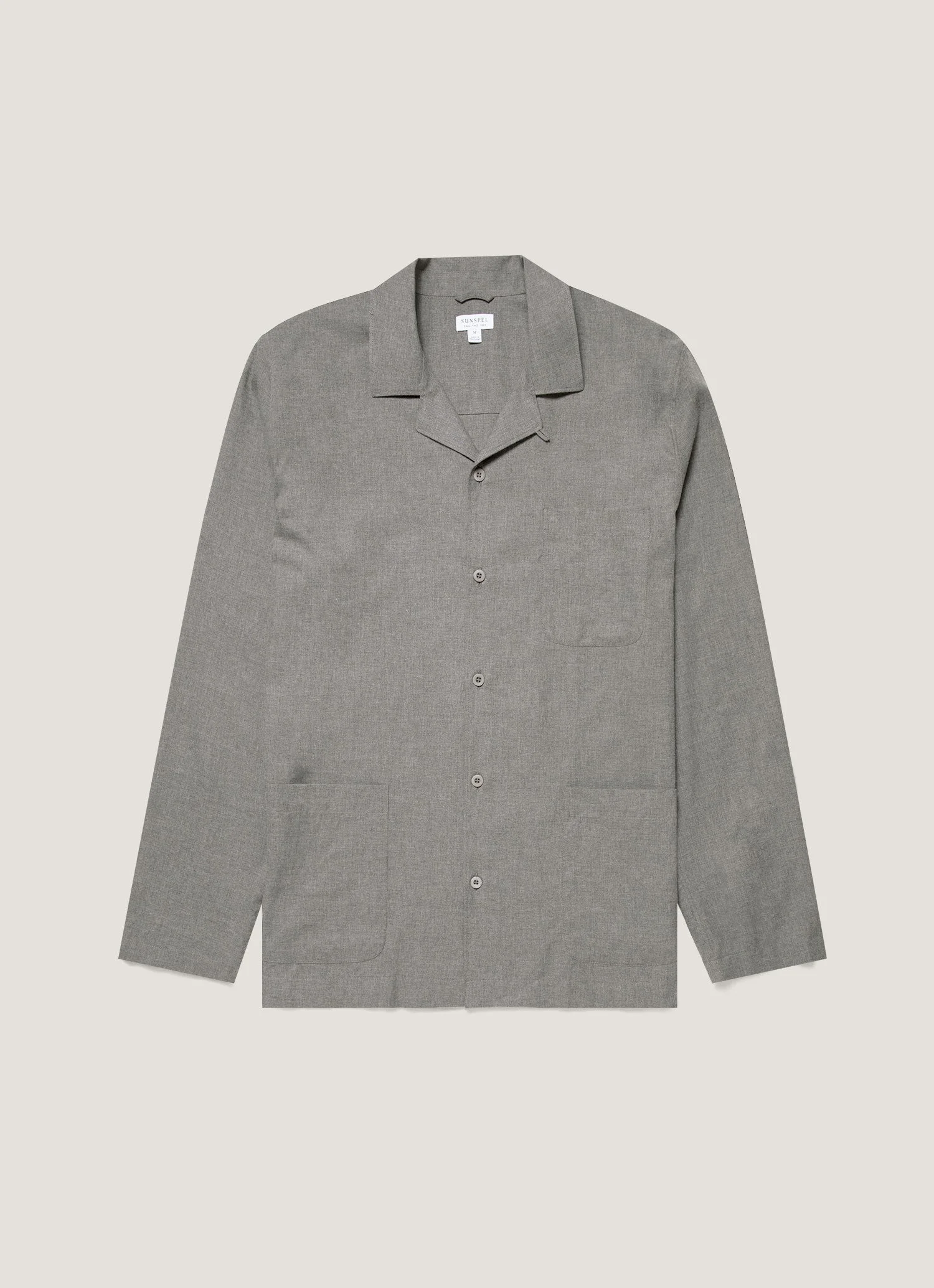 Our contemporary take on a classic pyjama shirt, made from a soft brushed cotton flannel. With details taken from archive Sunspel nightwear sets, the pyjama jacket is updated with a three pocket design and contemporary cut. Perfect paired with matching pyjama trousers or layered over our classic T-shirt. Product Code: MPJS5503-GYAK2 Fabric & Care - 100% Cotton - Gentle wash at 40°C - Do not tumble dry - Dry cleanable - Made in Portugal Size & Fit - Relaxed fit - Model is 6'2", chest 38" and wears a size M