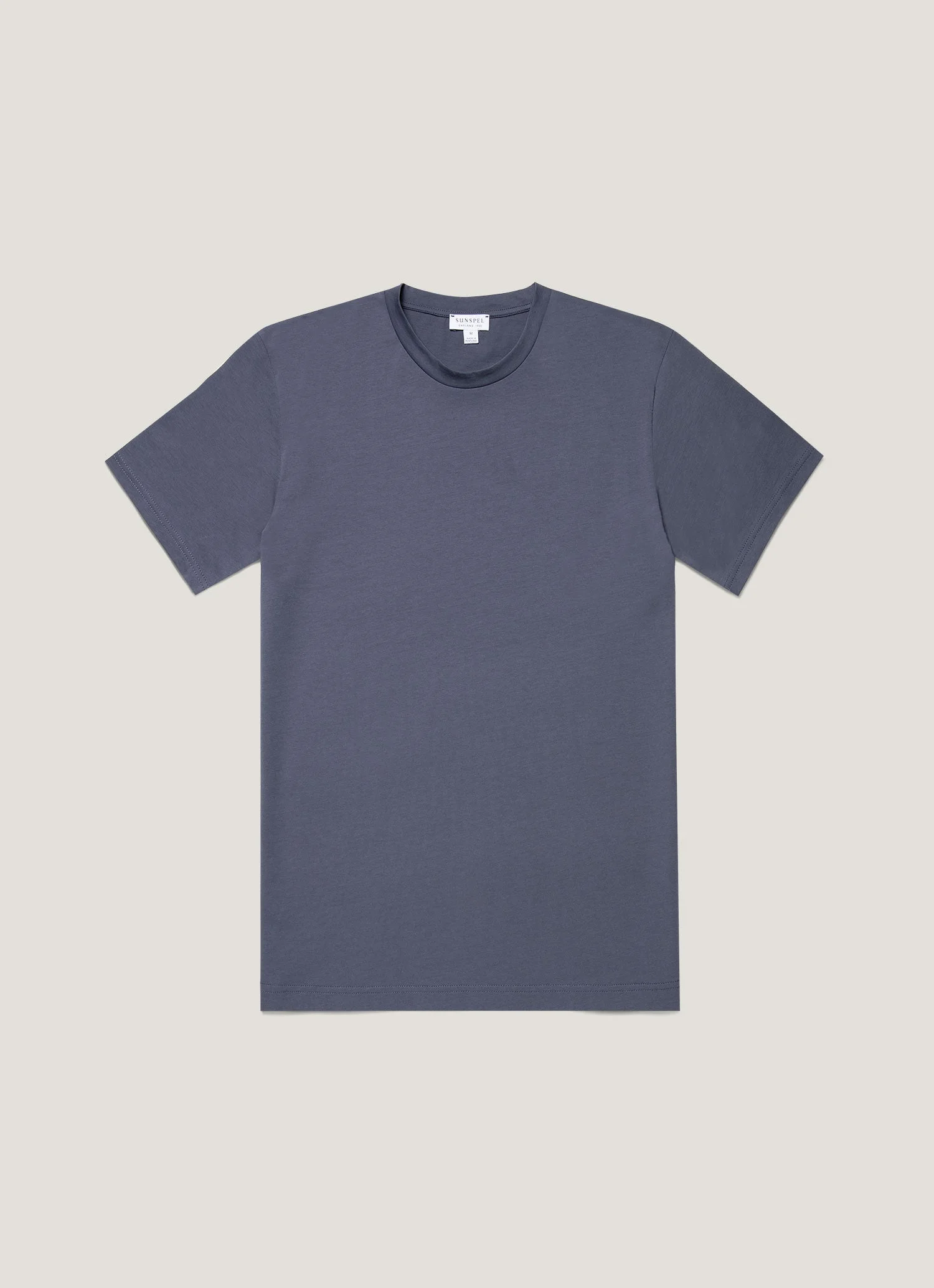 Originally designed for Daniel Craig in Casino Royale, the Riviera T-shirt is crafted in a luxurious midweight cotton fabric. Its smooth, durable feel and slight extra weight makes it the ideal solution for transitioning between the seasons. Product Code: MTSH0007S-BUUA Fabric & Care - 100% Supima Cotton - Cotton is sustainably sourced from California - Cotton is extra-long staple for durability and comfort - Gentle wash at 30°C - Do not tumble dry - Dry cleanable - Made in Portugal Size & Fit - Slim fit - Cut with the same fit as the Classic T-shirt across the chest but the midweight fabric will make it feel more fitted by comparison - Model is 6'1", chest 38" and wears a size M