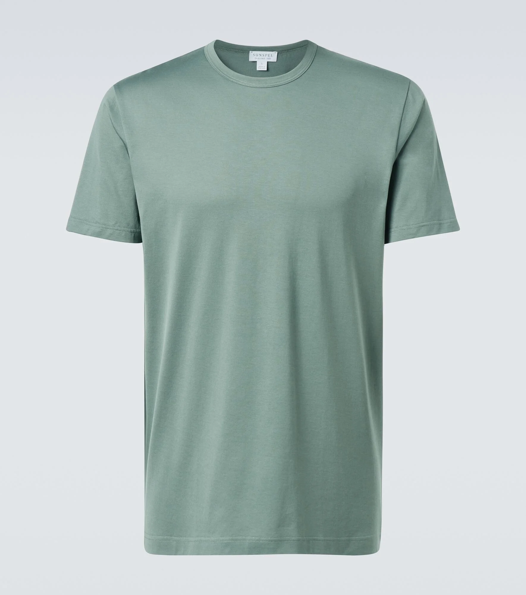 Founded in 1860, Sunspel is a British brand with a proven track record for producing timeless essentials. Handcrafted from pure cotton, this T-shirt features a sophisticated slim fit with an exceptionally soft and lightweight fabrication. Product Details - Material: 100% cotton - Care instructions: machine wash at 30 degrees - Made in the UK - Designer color name: Dusk Green - Item color: green - Sleeves: short-sleeved - Collar: crewneck - Item number: P01061519 Size & Fit - True to size - Straight fit - Slightly stretchy fabric - Falls to the hip - Height of model is 189cm-74.5" and wears a size L