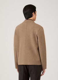 An elegant yet understated jacket, designed for everyday wear. Inspired by an innovative fabric from the Sunspel archive, it’s knitted with warm lambswool on the outside and smooth cotton on the inside for comfort and versatility. Tailoring-inspired details, like the buttoned placket and refined seam lines, meet a boxy silhouette, clean hem, and side pockets for a relaxed, effortless feel. Product Code: MJAC8289-BRGB Fabric & Care - 54% Merino Wool, 40% Cotton, 5% Nylon, 1% Elastane - Cool hand wash - Do not tumble dry - Dry cleanable - Made in Portugal Size & Fit - Regular fit - Model is 6'2", chest 38" and wears a size M