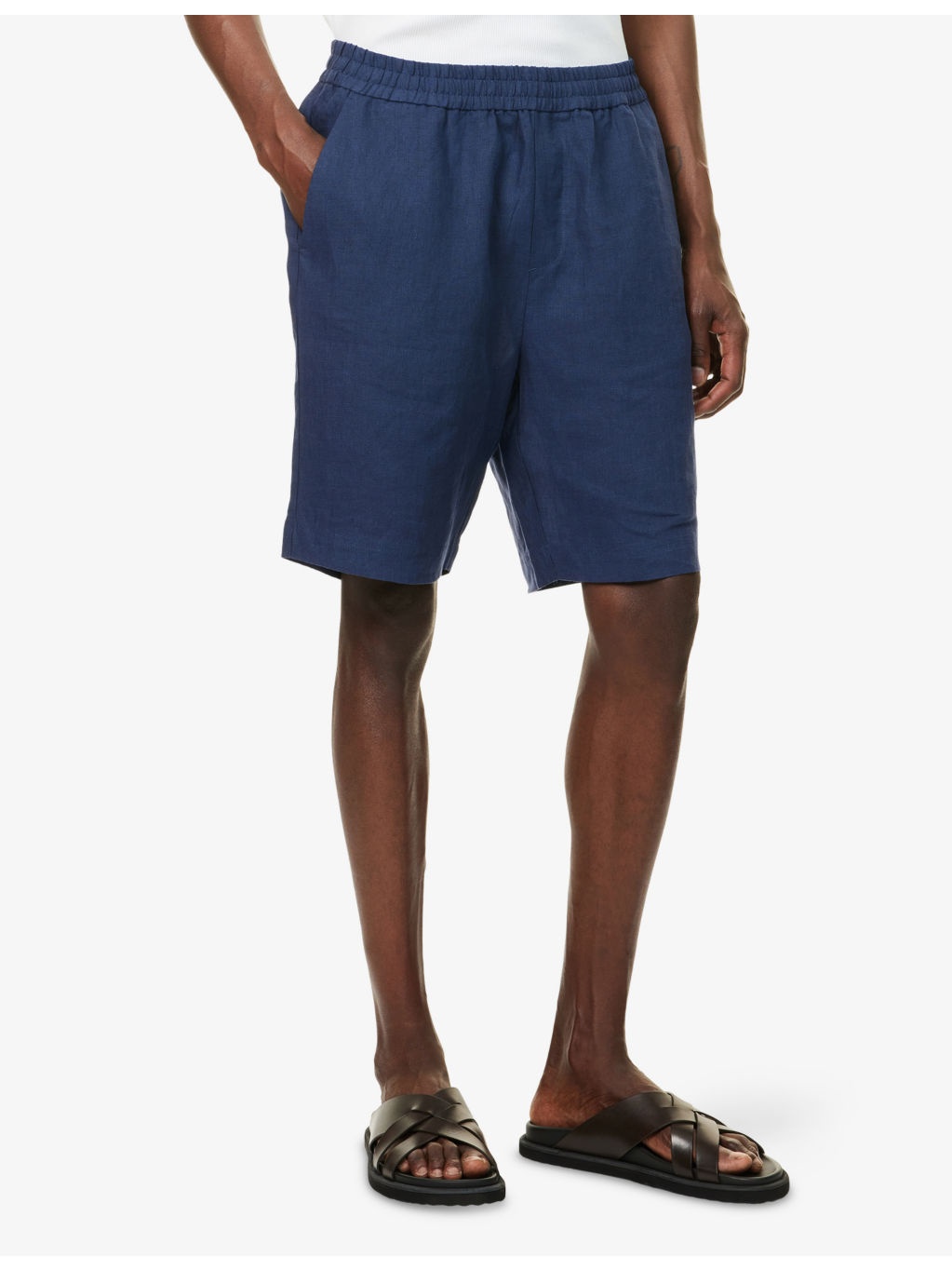PRODUCT DETAILS - Sunspel linen shorts - 100% linen - Relaxed fit, internal drawstring, elasticated waist, two slip pockets at front, one patch pocket at back - Dry clean only - Made in Portugal - Size medium: rise 12.2in / 31cm, inside leg 9in / 23cm, leg opening 22.8in / 58cm - Model is 6ft 2in/1.88m and wears a size medium - Lightweight, non-stretch Ref: R04472165