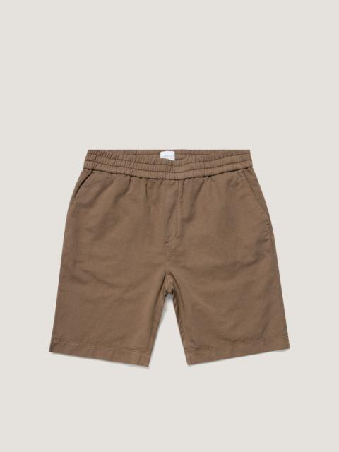The perfect summer shorts, in a French cotton-linen mix that offers the softness of cotton and the casual look and breathability of linen. They're garment dyed to give a broken-in look. The style is a mid rise with a drawstring and straight leg. Product Code: MSHR3505-BRDH Fabric & Care - 76% Cotton, 24% Linen - Fabric woven by Velcorex, France - Gentle wash at 40°C - Wash separately - Do not tumble dry - Dry cleanable - Made in Portugal Size & Fit - 8.75" Inside leg - Drawstring waist - Model is 6'1" and wears a size M