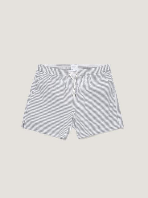 Drawstring swim shorts with a mid length leg. The shorts are manufactured using an upcycled marine plastic from SEAQUAL®, made from waste plastic recovered from the oceans. Available in a range of solid tones and prints. Product Code: MSHR3705-BUWB Fabric & Care - 70% Seaqual™, 30% Recycled Polyester - Product partly made from upcycled marine plastics - Gentle wash at 30°C with similar colours - Do not tumble dry - Dry cleanable - Made in Portugal Size & Fit - 6" Inside leg - Drawstring waist - Model is 6'1" and wears a size M