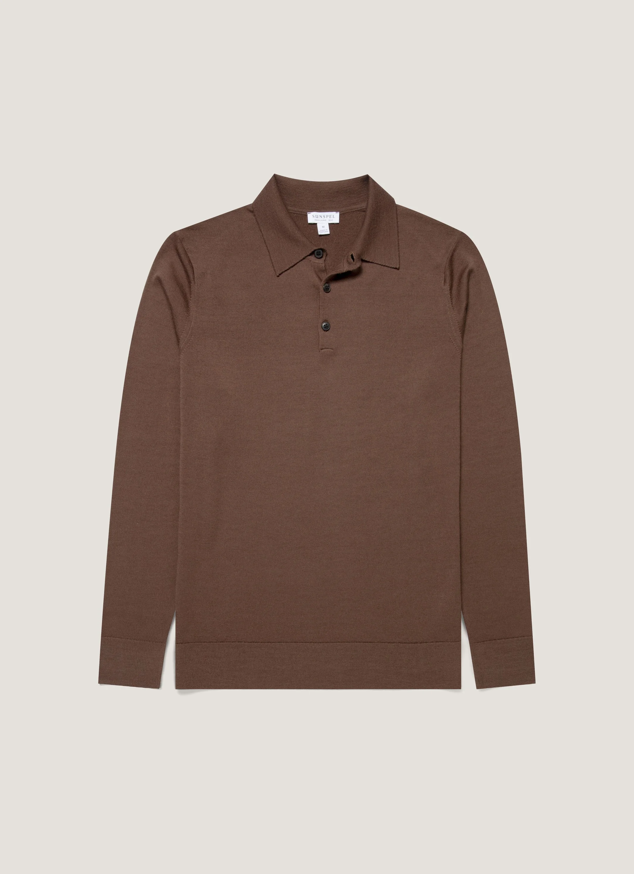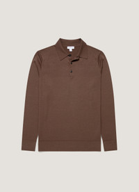 Inspired by the classic polo shirt, this refined piece is crafted from our Italian-spun extra-fine merino wool and knitted on traditional Bentley frame machines from Loughborough, England. Featuring a crisp collar, natural horn buttons, and ribbed hems and cuffs, it offers lightweight comfort and is ideal for year-round layering. Product Code: MPOL8092-BRGC Fabric & Care - 100% Extra-Fine Merino Wool - Non-mulesed - Horn buttons - Total Easy Care (TEC) treatment applied for machine washability and shrink resistance - Gentle wash at 30°C on a wool cycle - Do not tumble dry - Dry cleanable - Made in Portugal Size & Fit - Regular fit - Model is 6'2", chest 38" and wears a size M