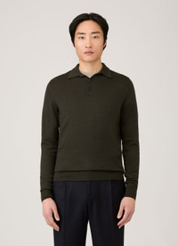 Inspired by the classic polo shirt, this refined piece is crafted from our Italian-spun extra-fine merino wool and knitted on traditional Bentley frame machines from Loughborough, England. Featuring a crisp collar, natural horn buttons, and ribbed hems and cuffs, it offers lightweight comfort and is ideal for year-round layering. Product Code: MPOL8092-GNIN Fabric & Care - 100% Extra-Fine Merino Wool - Non-mulesed - Horn buttons - Total Easy Care (TEC) treatment applied for machine washability and shrink resistance - Gentle wash at 30°C on a wool cycle - Do not tumble dry - Dry cleanable - Made in Portugal Size & Fit - Regular fit - Model is 6'2", chest 38" and wears a size M