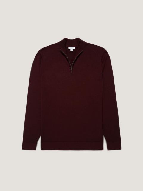 A sports-inspired half-zip jumper crafted from our Italian-spun extra-fine merino wool. Knitted on traditional Bentley frame machines from Loughborough, England, it is beautifully lightweight. The perfect layering piece for year-round wear. Product Code: MJUM8116-GNIN Fabric & Care - 100% Extra-Fine Merino Wool - Non-mulesed - Total Easy Care (TEC) treatment applied for machine washability and shrink resistance - Gentle wash at 30°C on a wool cycle - Do not tumble dry - Dry cleanable - Made in Portugal Size & Fit - Regular fit - Model is 6'3", chest 36" and wears a size M