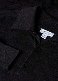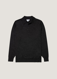 Drawing inspiration from the classic polo shirt, this versatile piece is crafted from Italian-spun extra-fine merino wool and is knitted on traditional Bentley frame knitting machines from Loughborough, England. Featuring a crisp collar, natural horn buttons and ribbed hems and cuffs, it is a lightweight, comfortable layering option for all year round. Product Code: MPOL8092-GYAD Fabric & Care - 100% Extra-Fine Merino Wool - Non-mulesed - Total Easy Care (TEC) treatment applied for machine washability and shrink resistance - Gentle wash at 30°C - Do not tumble dry - Dry cleanable - Made in Portugal Size & Fit - Regular fit - Model is 6'1", chest 38" and wears a size M