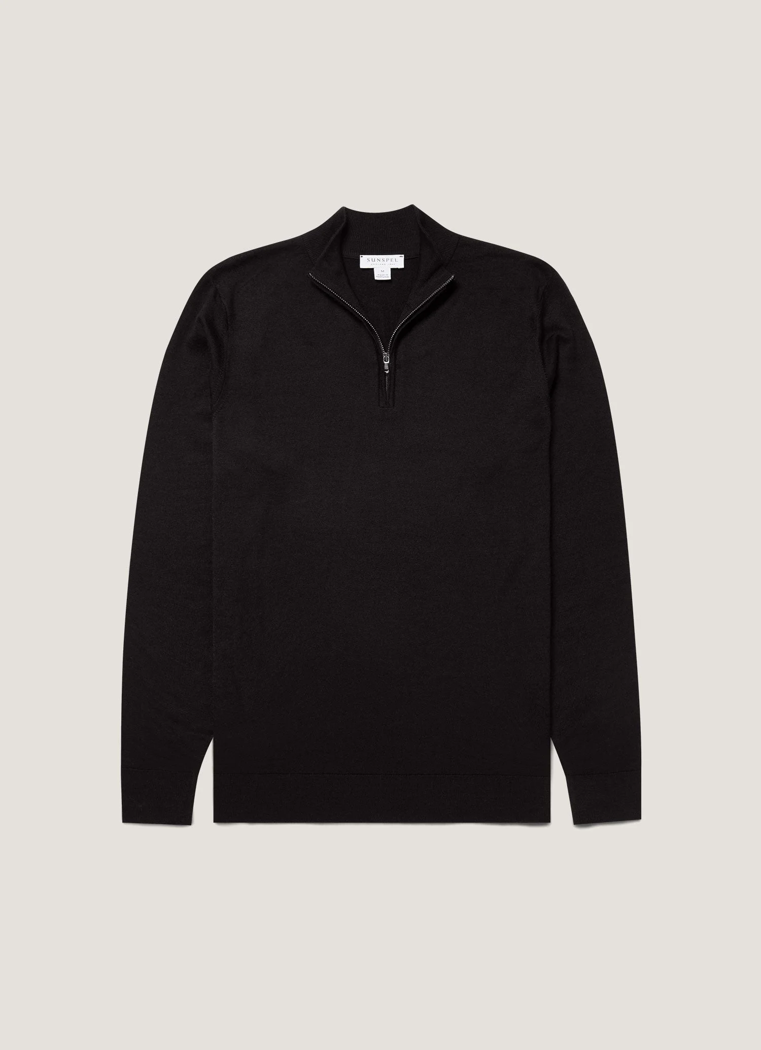 A sports-inspired half-zip jumper, in an Italian-spun extra-fine merino wool. Knitted on traditional Bentley frame knitting machines from Loughborough, England, it is beautifully lightweight, making it a perfect option for layering all year round. Product Code: MJUM8116-BKAA Fabric & Care - 100% Extra-Fine Merino Wool - Non-mulesed - Total Easy Care (TEC) treatment applied for machine washability and shrink resistance - Gentle wash at 30°C - Do not tumble dry - Dry cleanable - Made in Portugal Size & Fit - Regular fit - Model is 6'1", chest 38" and wears a size M