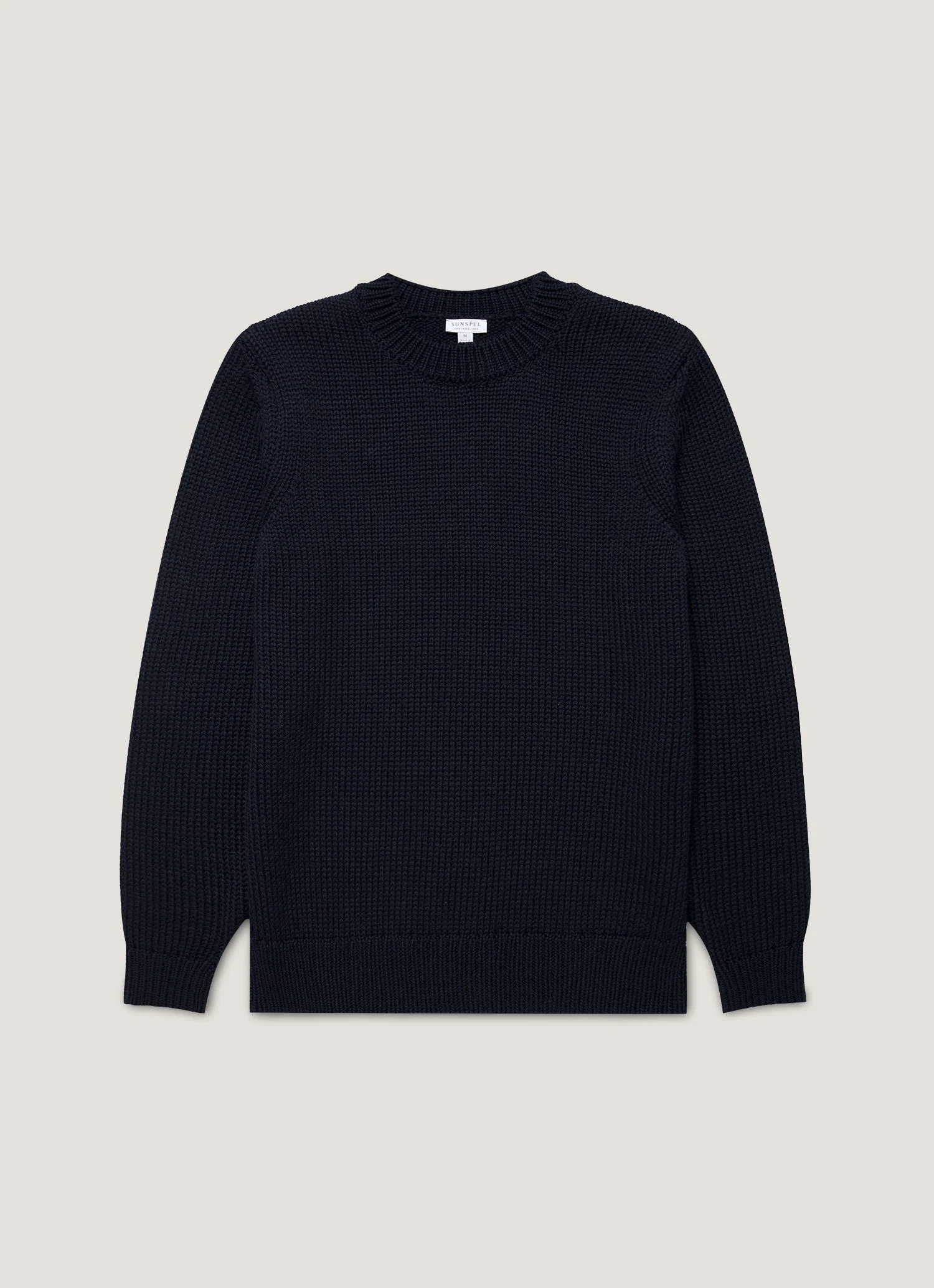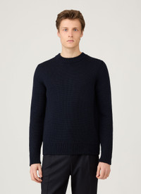A modern interpretation of the traditional Guernsey jumper. Crafted in England from heavyweight merino wool, it offers exceptional warmth and has been refined for a super-soft, luxurious feel. Finished with wide trims and a regular fit, it’s a timeless winter staple. Product Code: MJUM8287-BUAA Fabric & Care - Made In England - 100% Merino Wool - Cool hand wash - Do not tumble dry - Dry cleanable Size & Fit - Regular fit - Model is 6'1", chest 36" and wears a size M