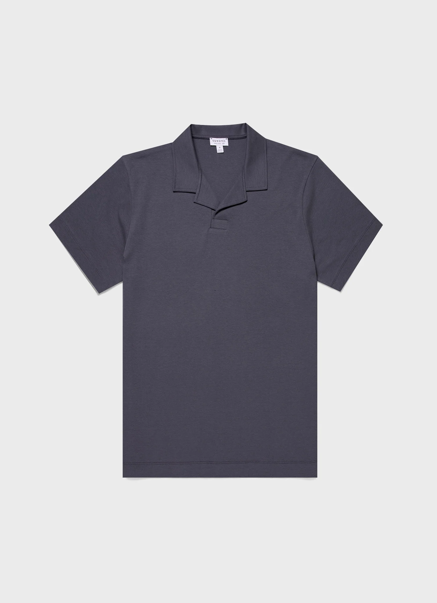 A heavyweight summer polo crafted in luxurious carbon-brushed Supima cotton. With a soft, smooth feel, it has a clean buttonless open placket, collar and side vents. Its relaxed fit gives it both a smart and contemporary feel, making it an ideal everyday piece. Product Code: MPOL1071-BUUA Fabric & Care - 100% Supima Cotton - Gentle wash at 30°C with similar colours - Do not tumble dry - Do not dry clean - Made in Portugal Size & Fit - Relaxed fit - Model is 6'3", chest 39" and wears a size M