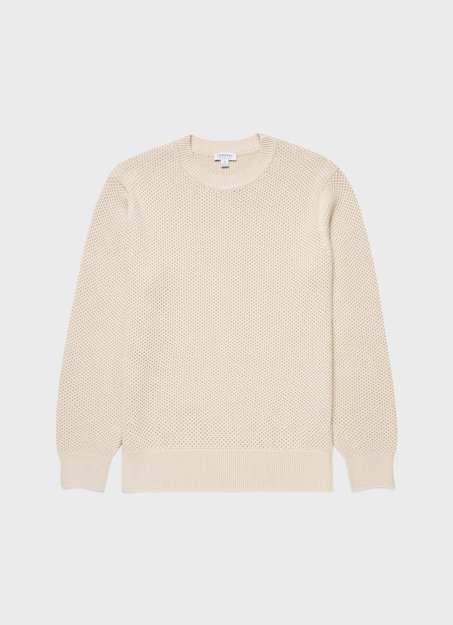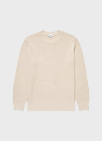 A perfect transeasonal layer, crafted in long-staple cotton spun by a renowned Italian mill. The heavy honeycomb knit offers a soft feel while the cotton gives it a lightweight and easy finish. With a regular fit, it features ribbed trims and collar and a clean tubular seam at the neck. Product Code: MJUM8207-WHCR Fabric & Care - 100% Cotton - Gentle wash at 30°C with similar colours - Do not tumble dry - Dry cleanable - Made in Portugal Size & Fit - Regular fit - Model is 6'2", chest 38" and wears a size M