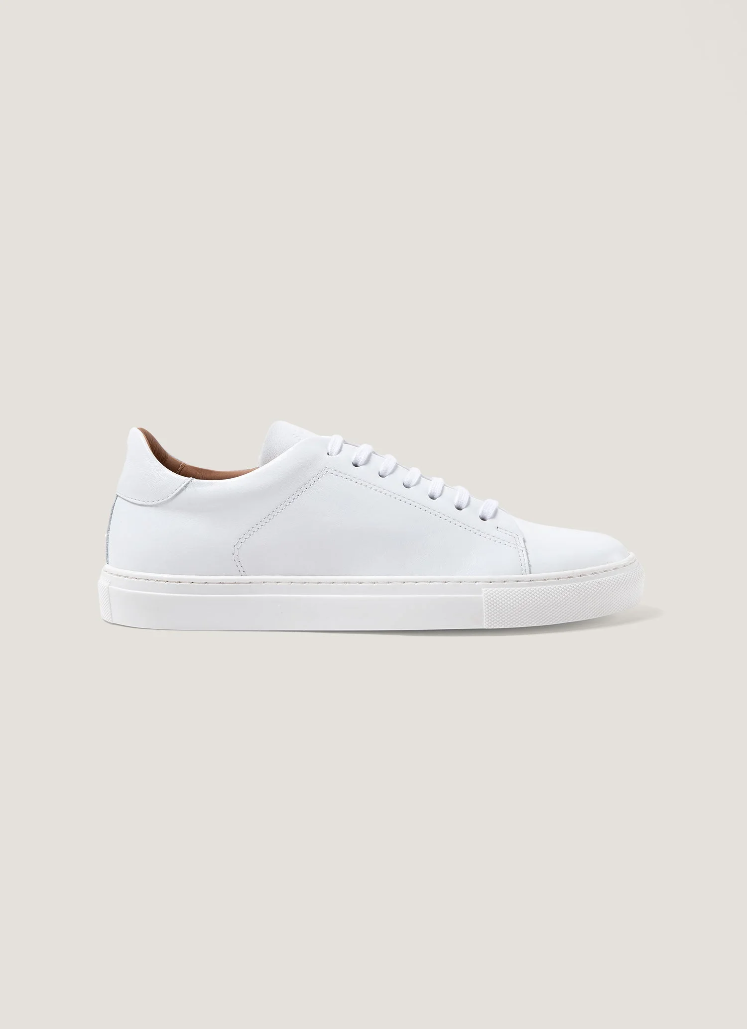 Made in England, our classic leather tennis shoe is crafted for exceptional comfort with our cool Supima cotton mesh lining. Features a super lightweight sole, a cushioned insole, and extra padding around the upper. A versatile everyday sneaker that makes a relaxed shoe for travelling. Product Code: MFTW9458-WHAA Fabric & Care - Made in England - Main: 100% Leather - Lining: 100% Cotton - Non slip rubber sole Size & Fit - UK 7-11 - Fits true to size - take your normal size
