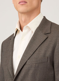 A light Panama textured blazer crafted in a luxuriously soft, Italian-made wool that doesn't crease. It's unstructured giving it a contemporary feel and it has refined detailing, bluff pockets and a half buggy lining. Pair with the matching trouser which is also creaseless to complete an ideal suit for work or formal occasions. Product Code: MJAC7197-BRFX Fabric & Care - 99% Wool, 1% Elastane - Horn buttons - Do not wash - Do not tumble dry - Dry clean only - Made in Portugal Size & Fit - Regular fit - Model is 6'1", chest 38" and wears a size M
