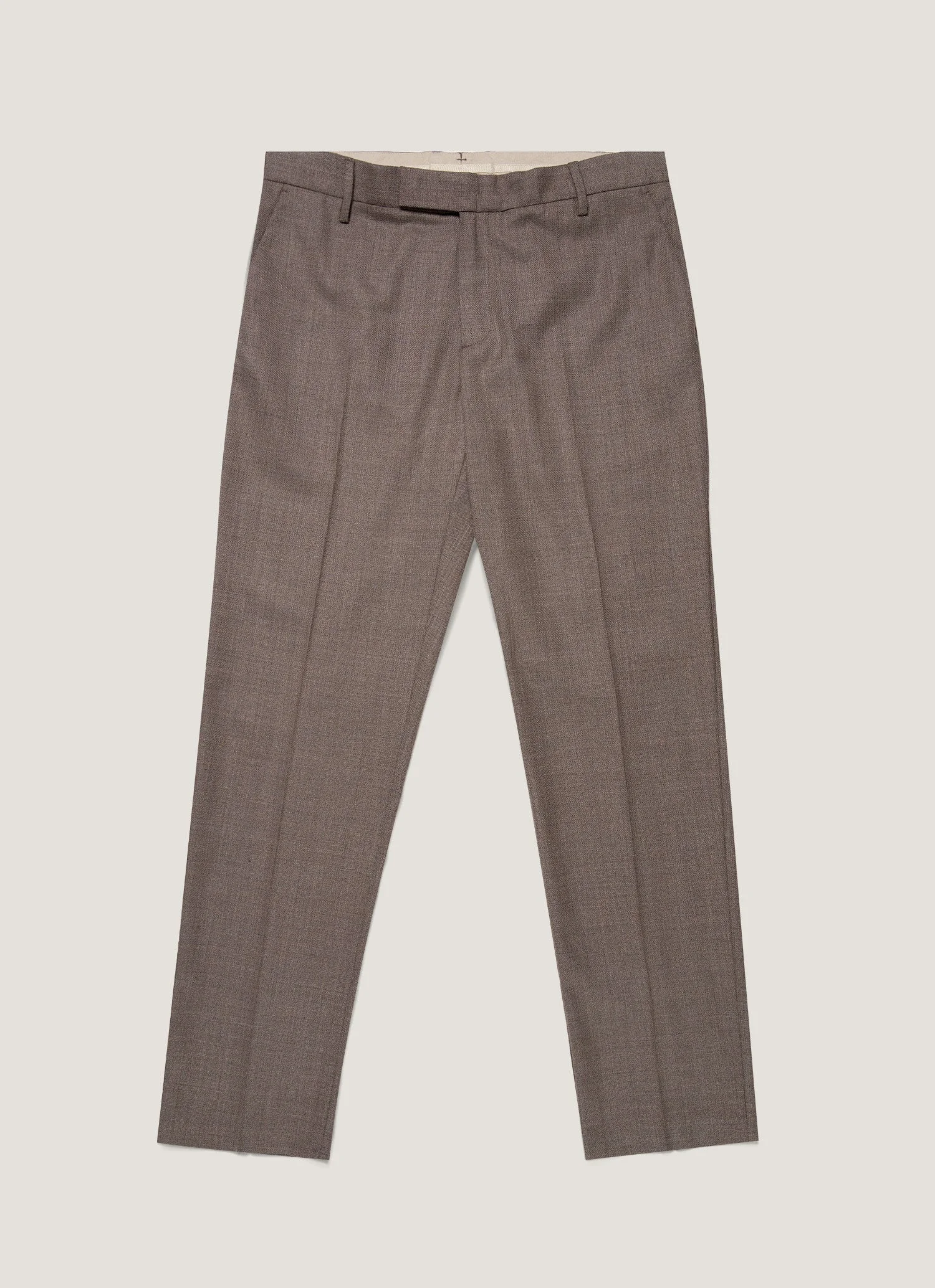 A refined wool trouser that balances style and comfort. The lightweight wool is creaseless with a super-soft feel against the skin. With a regular fit, a tailored waistband, neat front pockets and two rear jet pockets. Pair with our travel wool jacket for an effortless unstructured suit. Product Code: MTRS3109-BRFX Fabric & Care - 99% Wool, 1% Elastane - Horn buttons - Do not wash - Do not tumble dry - Dry clean only - Made in Portugal Size & Fit - Regular fit - Flat front - Straight leg - Tailored waist - Model is 6'1" and wears a size 32