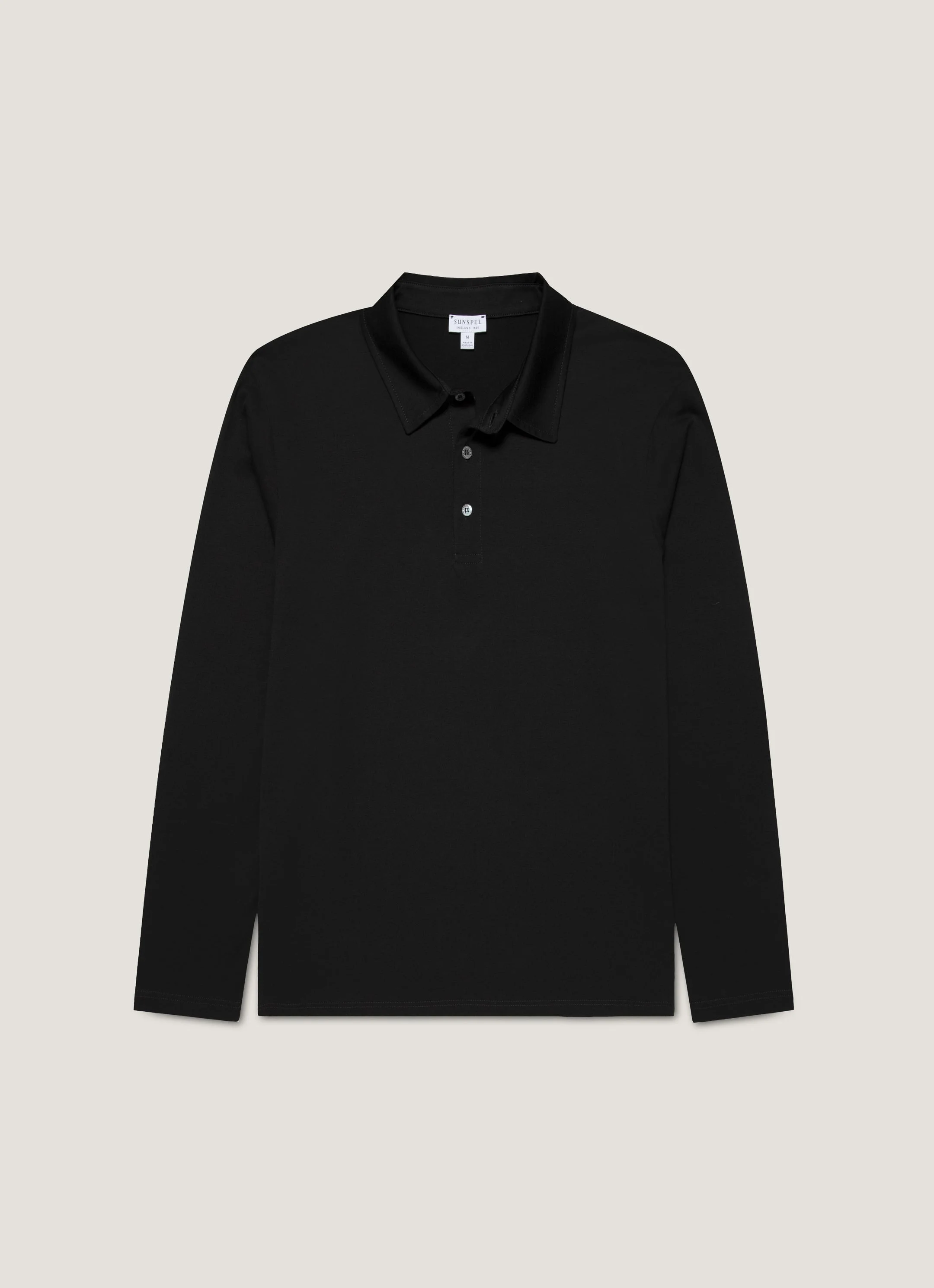 A long sleeve polo shirt made from the same Q82 jersey as our Classic T-shirt, crafted from the finest extra-long staple Supima cotton, traceable to a single Californian farm. Designed with a regular fit and a structured collar, it has a clean, refined look. An ideal transeasonal piece with an exceptionally smooth feel against the skin. Product Code: MPOL1054-BKAA Fabric & Care - 100% Supima Cotton - Cotton is fully traceable and sustainably sourced from a single farm in California - Cotton is extra-long staple and two-fold for durability and comfort - Shell buttons - Gentle wash at 30°C with similar colours - Do not tumble dry - Do not dry clean - Made in Portugal Size & Fit - Regular fit - Model is 6'3", chest 39" and wears a size M