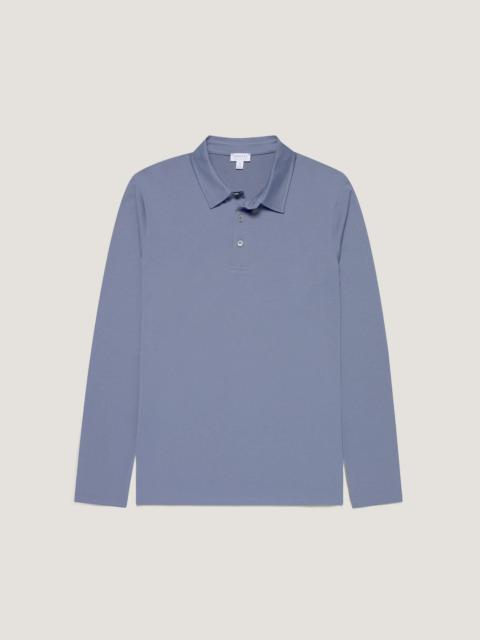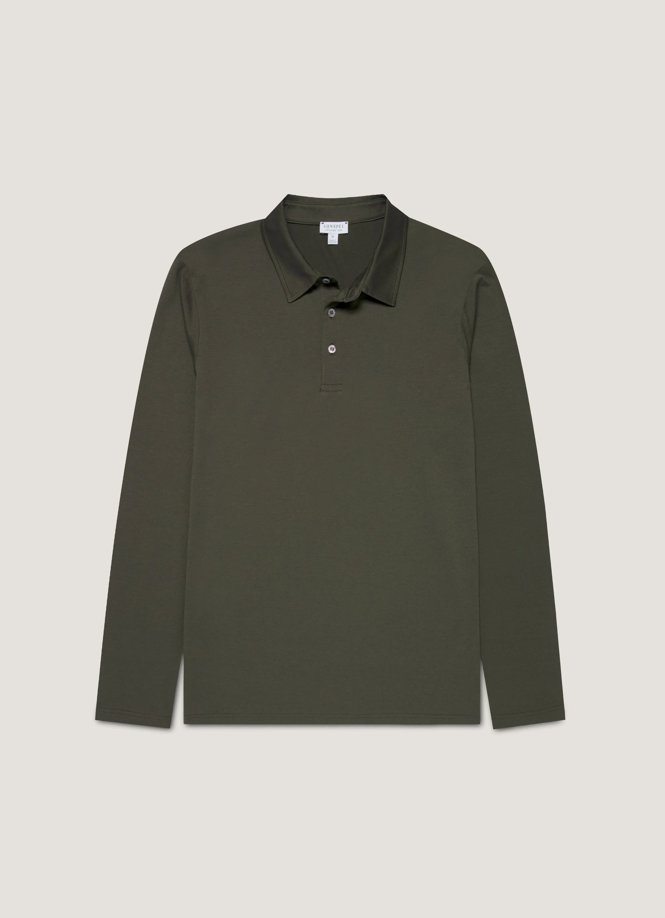 A long sleeve polo shirt made from the same Q82 jersey as our Classic T-shirt, crafted from the finest extra-long staple Supima cotton, traceable to a single Californian farm. Designed with a regular fit and a structured collar, it has a clean, refined look. An ideal transeasonal piece with an exceptionally smooth feel against the skin. Product Code: MPOL1054-GNIN Fabric & Care - 100% Supima Cotton - Cotton is fully traceable and sustainably sourced from a single farm in California - Cotton is extra-long staple and two-fold for durability and comfort - Shell buttons - Gentle wash at 30°C with similar colours - Do not tumble dry - Do not dry clean - Made in Portugal Size & Fit - Regular fit - Model is 6'2", chest 38" and wears a size M