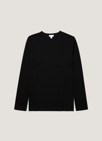 A long-sleeve T-shirt crafted from extra-long staple Supima cotton sourced from California. Both classic and contemporary, it has a refined heavyweight feel, a tailored but easy fit, and an exceptionally smooth feel against the skin. Ideal for spring layering, worn alone or under tailoring. Product Code: MTSH0206-BKAA Fabric & Care - 100% Supima Cotton - Cotton is fully traceable and sustainably sourced from California - Cotton is extra-long staple for durability and comfort - Gentle wash at 30°C with similar colours - Do not tumble dry - Do not dry clean - Made in Portugal Size & Fit - Regular fit - Model is 6'1", chest 36" and wears a size M