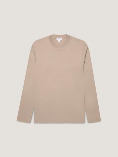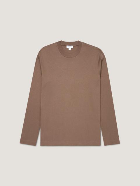 A long sleeve T-shirt made from our carbon-brushed Supima cotton, sustainably sourced from California. The compact cotton jersey fabric has a weightier feel than our other jerseys, making this an ideal T-shirt for the colder months. Product Code: MTSH0182-BRGC Fabric & Care - 100% Supima Cotton - Cotton is fully traceable and sustainably sourced from California - Cotton is extra-long staple for durability and comfort - Gentle wash at 30°C with similar colours - Do not tumble dry - Do not dry clean - Made in Portugal Size & Fit - Relaxed fit - Model is 6'3", chest 36" and wears a size M