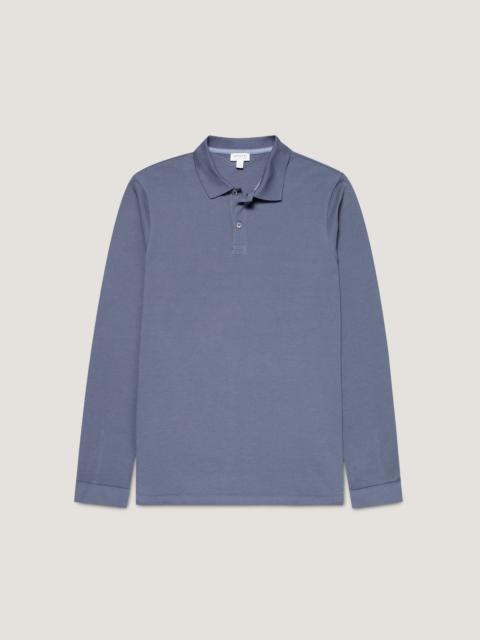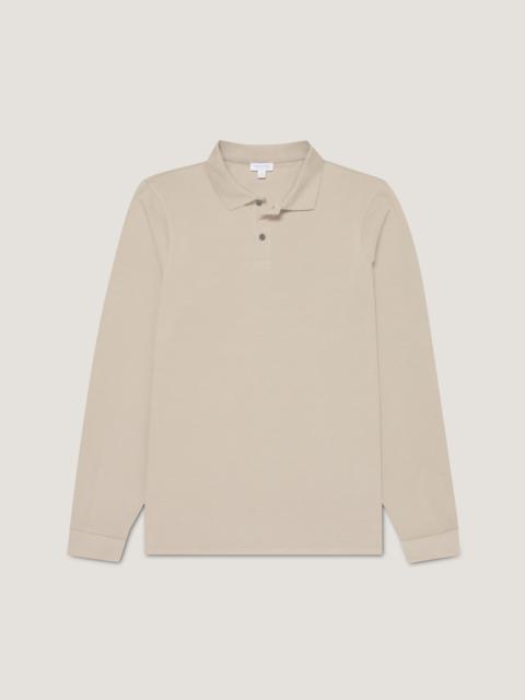 Crafted in luxurious, lightweight Californian Supima cotton, this is a long sleeve version of our classic pique polo. Durable and exceptionally soft against the skin, it's designed for a slim fit, featuring a ribbed collar, shell buttons, and a tailored cuff. It has a smart, sophisticated silhouette. Product Code: MPOL1065-WHAA Fabric & Care - 100% Supima Cotton - Cotton is fully traceable and sustainably sourced from a single farm in California - Cotton is extra-long staple for durability and comfort - Gentle wash at 30°C with similar colours - Shell buttons - Do not tumble dry - Dry cleanable - Made in Portugal Size & Fit - Slim fit - Cut with the same fit as the Riviera Polo Shirt but the Supima cotton fabric has more drape, so it will feel more relaxed by comparison - Model is 6'2", chest 39" and wears a size M