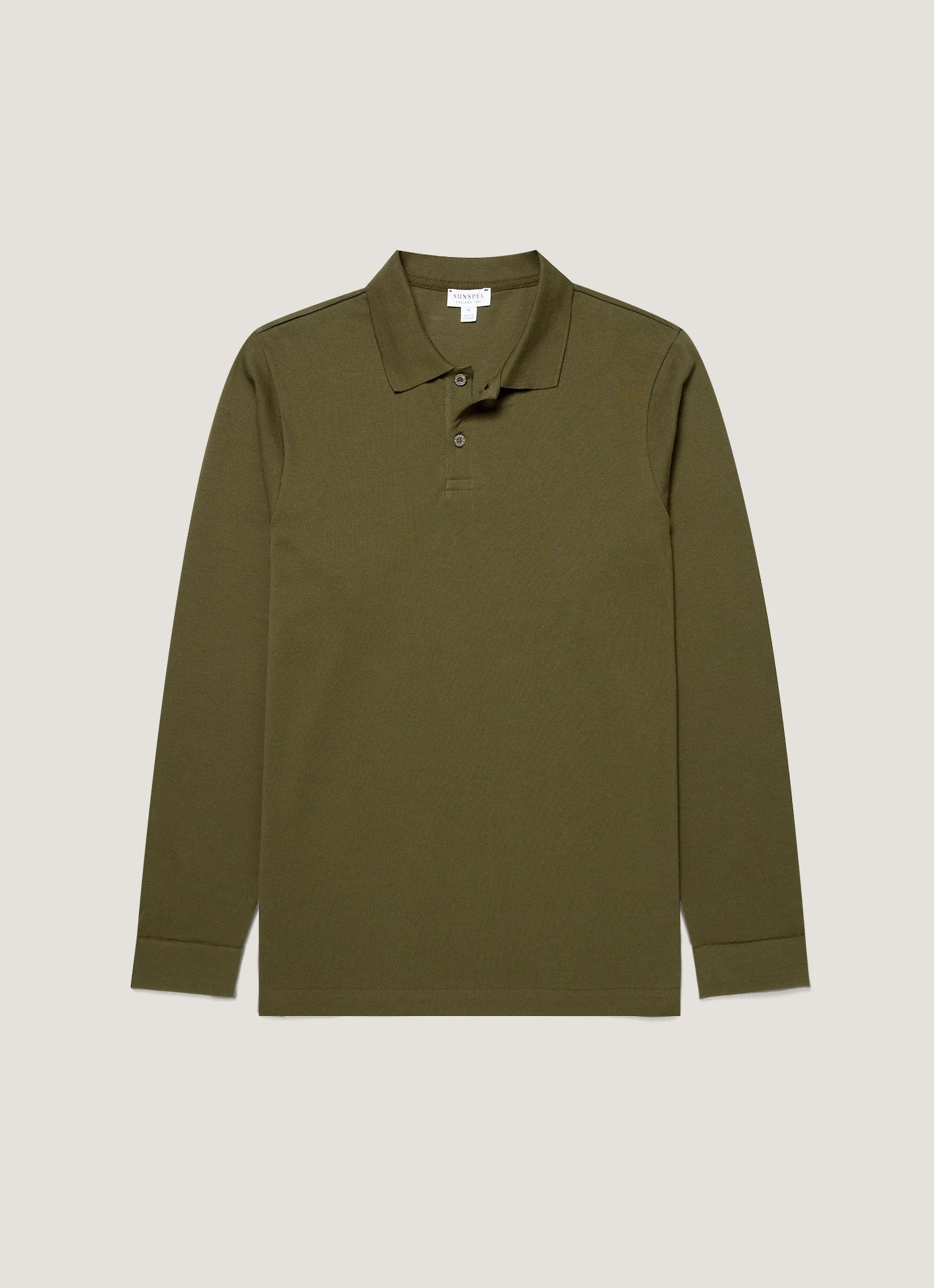 Crafted in luxurious, lightweight Californian Supima cotton, this is a long sleeve version of our classic pique polo. Durable and exceptionally soft against the skin, it's designed for a slim fit, featuring a ribbed collar, shell buttons, and a tailored cuff. It has a smart, sophisticated silhouette. Product Code: MPOL1065-GNIZ Fabric & Care - 100% Supima Cotton - Cotton is fully traceable and sustainably sourced from California - Cotton is extra-long staple for durability and comfort - Gentle wash at 30°C with similar colours - Shell buttons - Do not tumble dry - Do not dry clean - Made in Portugal Size & Fit - Slim fit - Cut with the same fit as the Riviera Polo Shirt but the Supima cotton fabric has more drape, so it will feel more relaxed by comparison - Model is 6'1", chest 36" and wears a size M