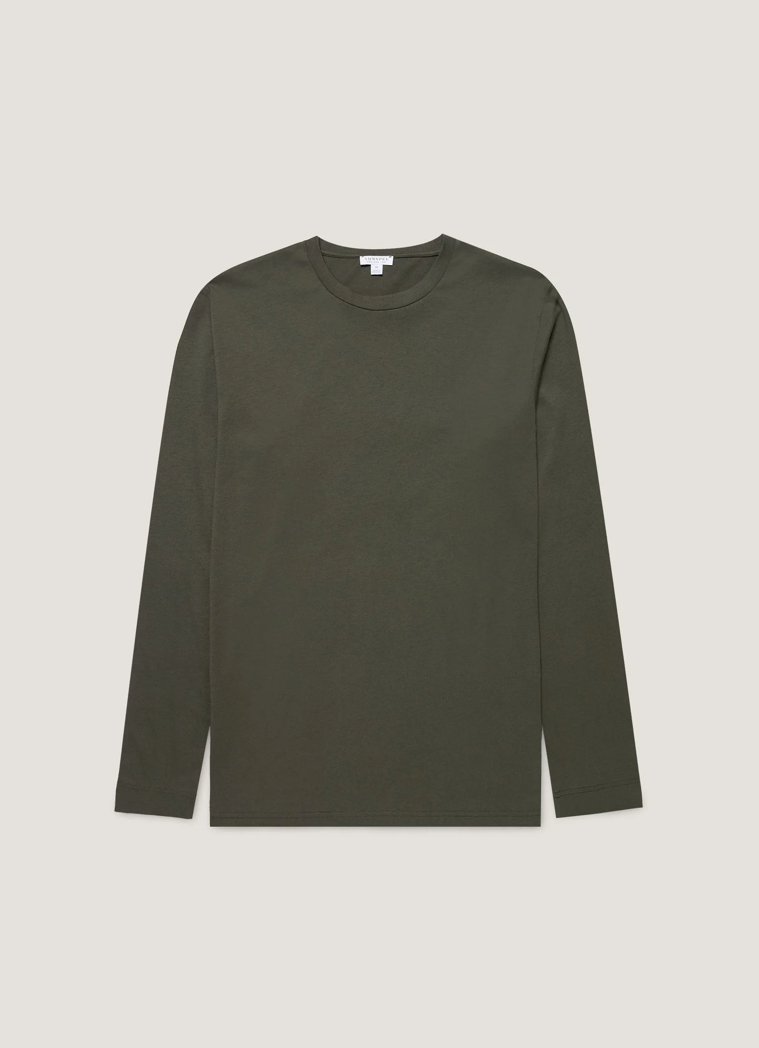 A long-sleeved version of the Riviera T-shirt, originally designed for Daniel Craig in Casino Royale. Crafted from luxurious midweight cotton, it offers a smooth, durable feel with a tailored fit and slightly heavier weight. The perfect versatile layer – wear it on its own or under a jacket for effortless, year-round style. Product Code: MTSH0136S-GNIN Fabric & Care - 100% Supima Cotton - Cotton is fully traceable and sustainably sourced from California - Cotton is extra-long staple for durability and comfort - Gentle wash at 30°C with similar colours - Do not tumble dry - Do not dry clean - Made in Portugal Size & Fit - Slim fit - Cut with the same fit as the Classic T-shirt across the chest but the midweight fabric will make it feel more fitted by comparison - Model is 6'1", chest 36" and wears a size M