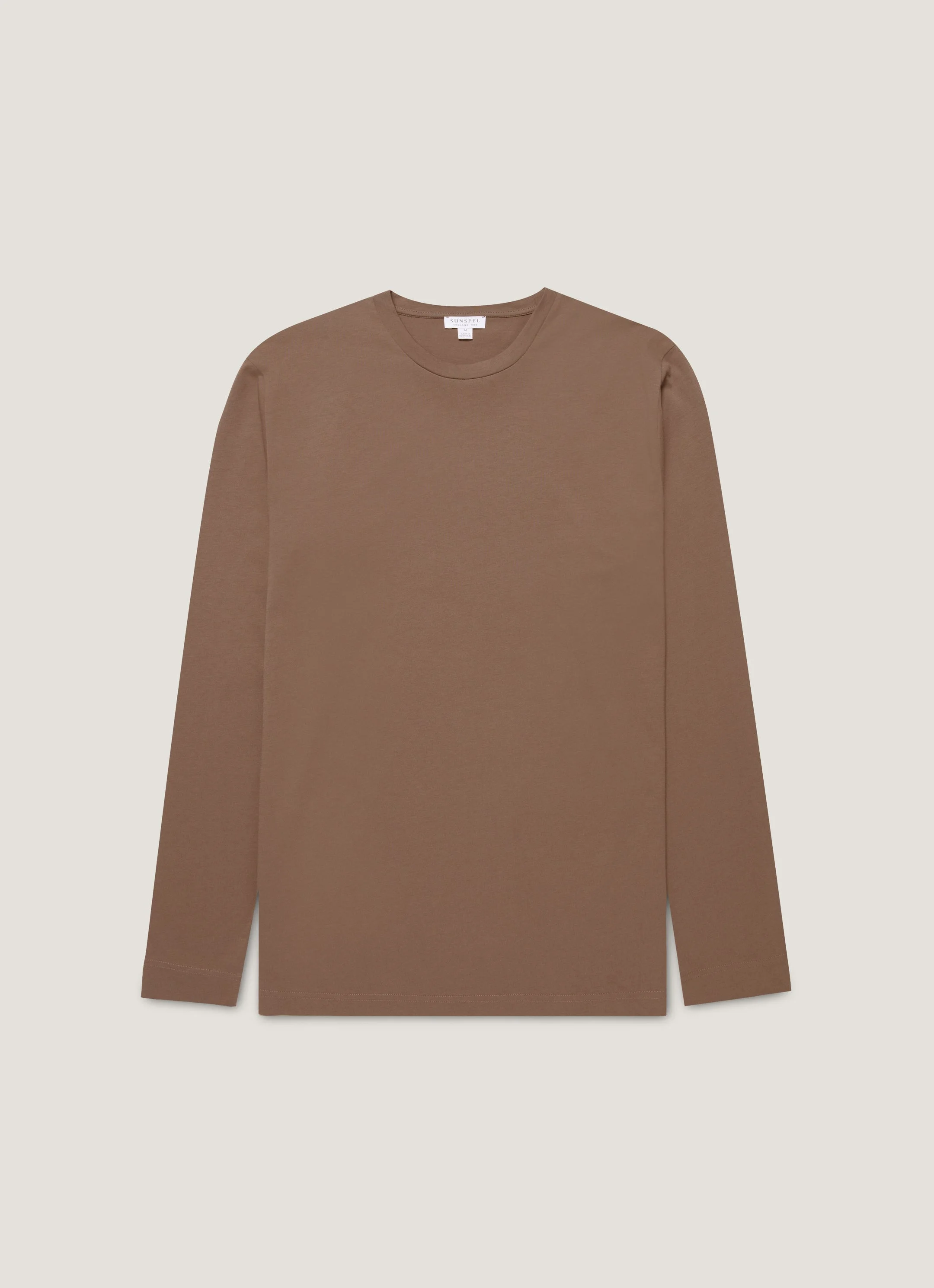 A long-sleeved version of the Riviera T-shirt, originally designed for Daniel Craig in Casino Royale. Crafted from luxurious midweight cotton, it offers a smooth, durable feel with a tailored fit and slightly heavier weight. The perfect versatile layer – wear it on its own or under a jacket for effortless, year-round style. Product Code: MTSH0136S-BRGC Fabric & Care - 100% Supima Cotton - Cotton is fully traceable and sustainably sourced from California - Cotton is extra-long staple for durability and comfort - Gentle wash at 30°C with similar colours - Do not tumble dry - Do not dry clean - Made in Portugal Size & Fit - Slim fit - Cut with the same fit as the Classic T-shirt across the chest but the midweight fabric will make it feel more fitted by comparison - Model is 6'2", chest 38" and wears a size M