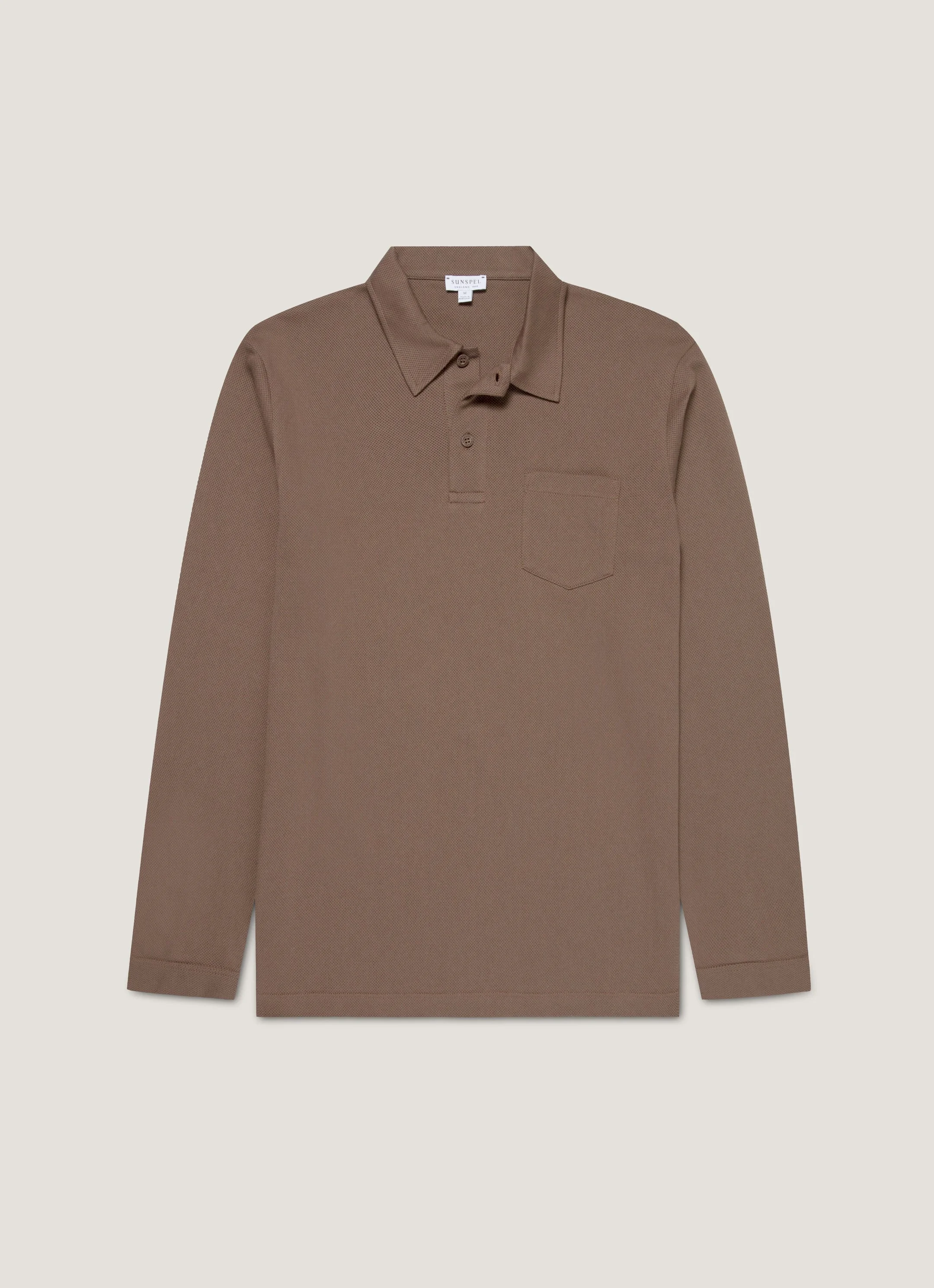 A long-sleeved version of our iconic Riviera Polo Shirt. Crafted from the finest extra-long staple Supima cotton, traceable to its Californian farm of origin. Lightweight, breathable and exceptionally comfortable, the unique mesh fabric and style were first developed by Sunspel in the 1950s for the French Riviera, and later tailored for Daniel Craig’s debut as James Bond in Casino Royale. Cut to the same slim fit as the original. Product Code: MPOL1031-BRGC Fabric & Care - 100% Supima Cotton - Cotton is fully traceable and sustainably sourced from California - Cotton is extra-long staple for durability and comfort - Gentle wash at 30°C with similar colours - Do not tumble dry - Dry cleanable - Made in Portugal Size & Fit - Slim fit - Model is 6'2", chest 38" and wears a size M