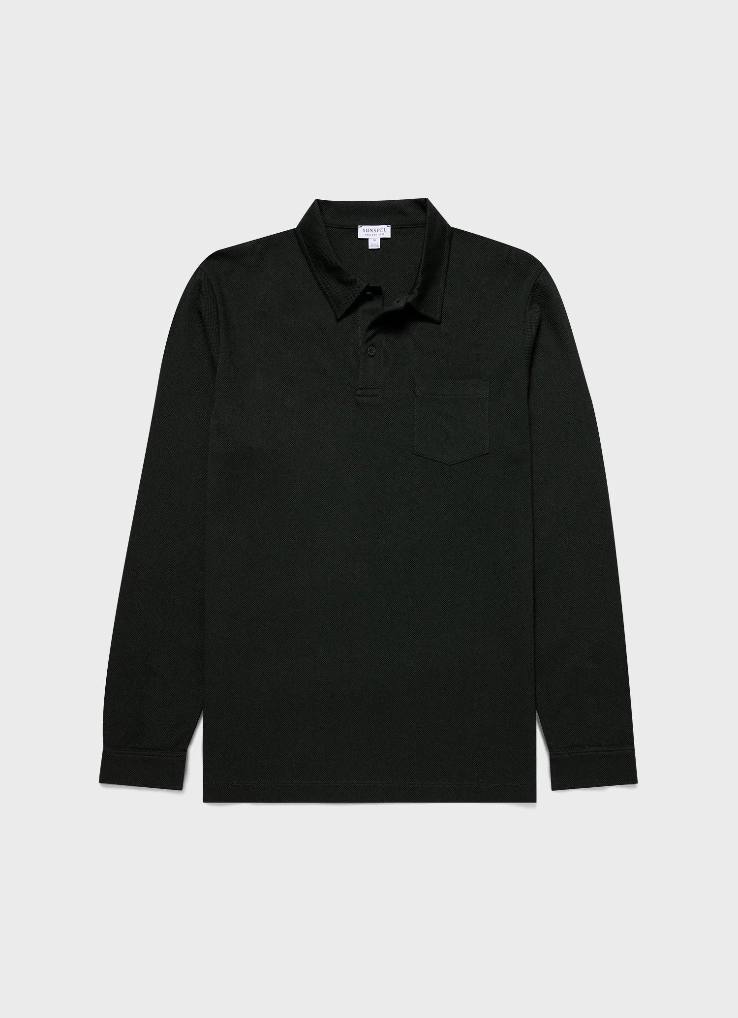A long sleeve take on our Riviera Polo Shirt. The style and unique mesh fabric were first developed by Sunspel in the 1950s for the French Riviera and later tailored for Daniel Craig’s debut performance as James Bond in Casino Royale. Crafted from the finest, extra-long staple Supima cotton, traceable to its Californian farm of origin, it is lightweight, breathable and exceptionally comfortable. A versatile garment that can be worn year-round, featuring a patch pocket and full length, cuffed arms. Cut for a slim fit, it is a modern classic. Product Code: MPOL1031-GNHX Fabric & Care - 100% Supima Cotton - Cotton is fully traceable and sustainably sourced from a single farm in California - Cotton is extra-long staple for durability and comfort - Gentle wash at 30°C - Do not tumble dry - Dry cleanable - Made in Portugal Size & Fit - Slim fit - Model is 6'3", chest 39" and wears a size M