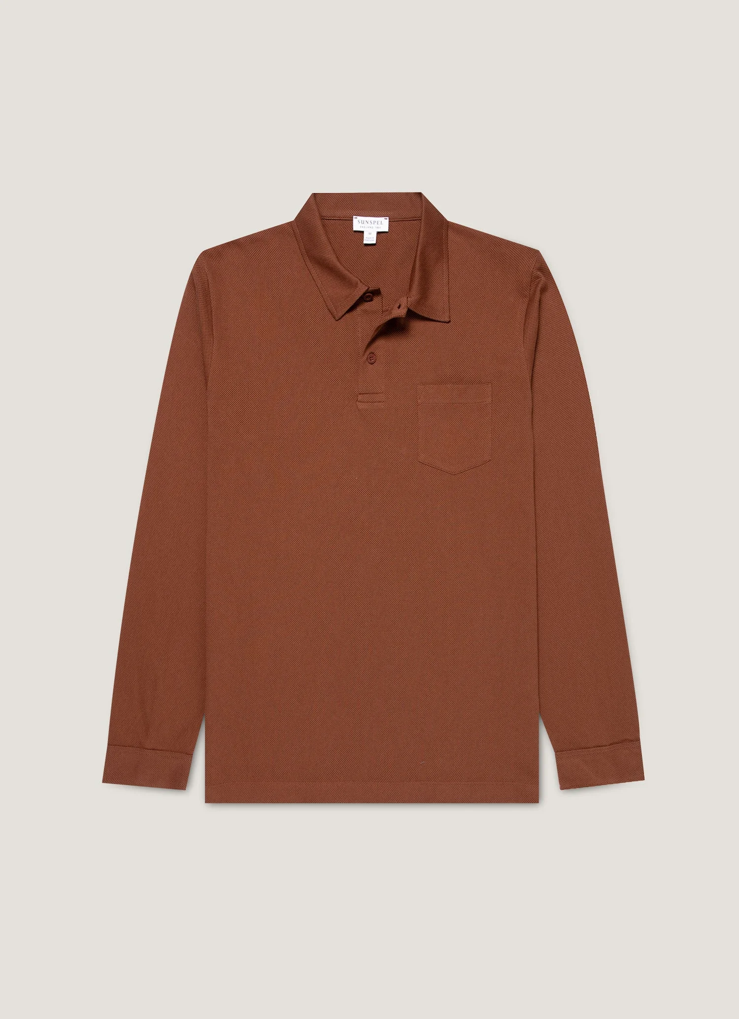 A long-sleeved version of our iconic Riviera Polo Shirt. Crafted from the finest extra-long staple Supima cotton, traceable to its Californian farm of origin. Lightweight, breathable and exceptionally comfortable, the unique mesh fabric and style were first developed by Sunspel in the 1950s for the French Riviera, and later tailored for Daniel Craig’s debut as James Bond in Casino Royale. Cut to the same slim fit as the original. Product Code: MPOL1031-BRGL Fabric & Care - 100% Supima Cotton - Cotton is fully traceable and sustainably sourced from California - Cotton is extra-long staple for durability and comfort - Gentle wash at 30°C with similar colours - Do not tumble dry - Dry cleanable - Made in Portugal Size & Fit - Slim fit - Model is 6'1", chest 36" and wears a size M