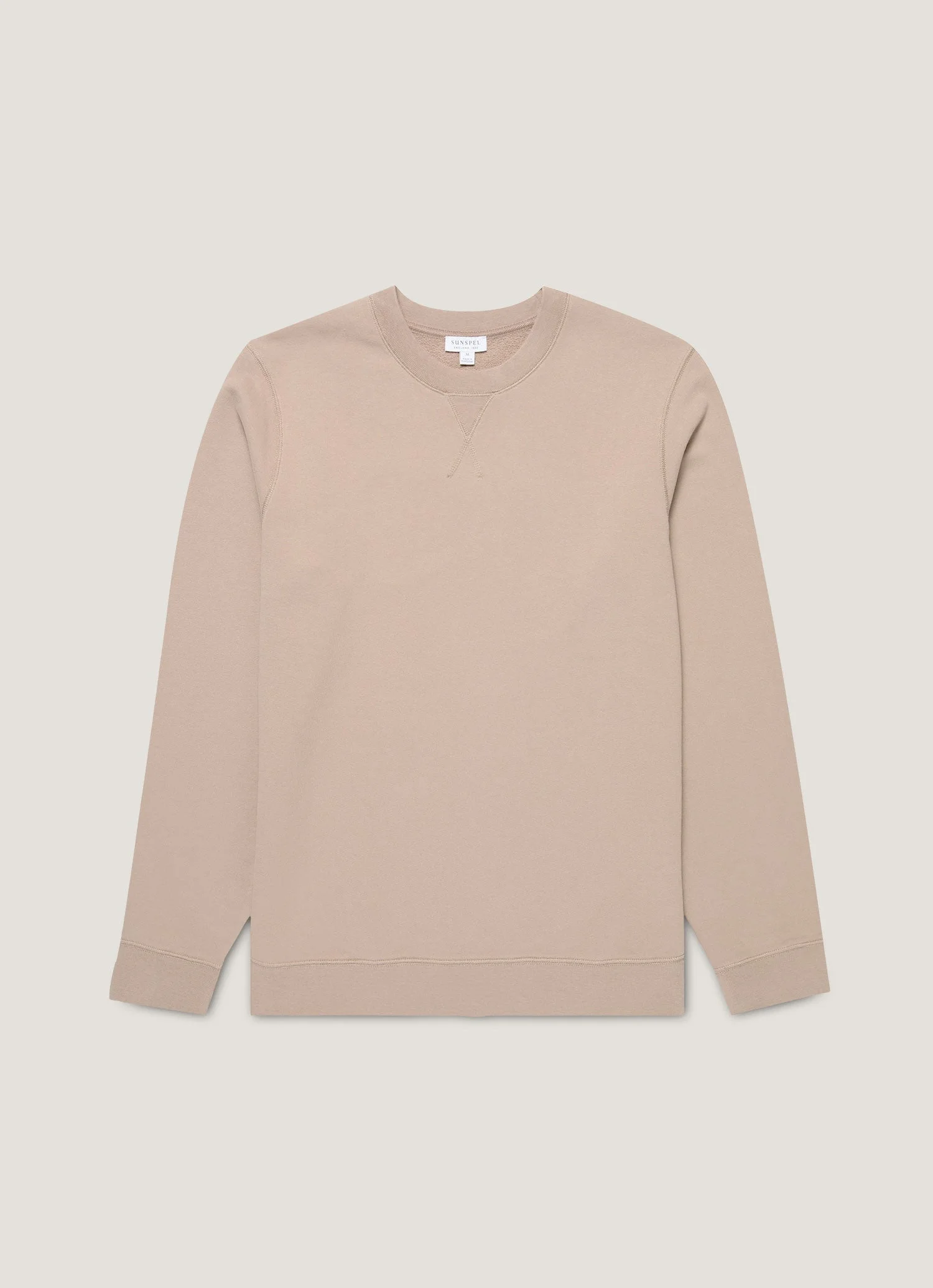 A modern take on the classic athletic sweatshirt. Introduced by former Sunspel creative director Jonathan Anderson, it has a neat fit and refined sweatshirt detailing, with a V-stitch insert and rib cuffs. Made from an exceptionally soft cotton loopback fabric, its internal loop stitch is specially designed to be warm and insulating. The contemporary cut makes it a highly versatile piece that can be worn as easily with a jacket as it can with matching sweatpants. Product Code: MSWE1516-BRGB Fabric & Care - Main: 100% Cotton - Ribs: 95% Cotton, 5% Elastane - Gentle wash at 30°C - Do not tumble dry - Do not dry clean - Made in Portugal Size & Fit - Regular fit - Model is 6'2", chest 38" and wears a size M