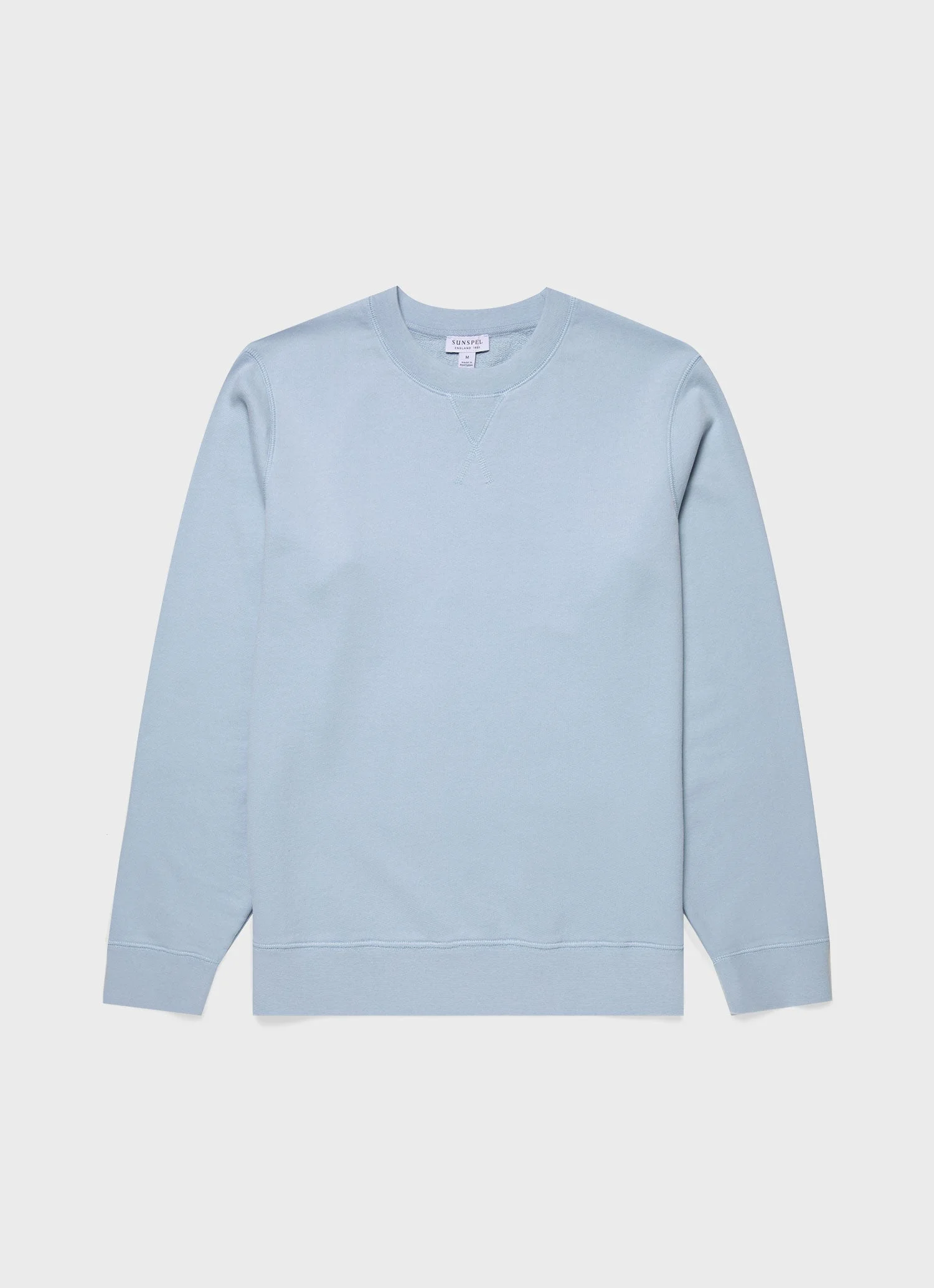 A modern take on the classic athletic sweatshirt. Introduced by former Sunspel creative director Jonathan Anderson, it has a neat fit and refined sweatshirt detailing, with a V-stitch insert and rib cuffs. Made from an exceptionally soft cotton loopback fabric, its internal loop stitch is specially designed to be warm and insulating. The contemporary cut makes it a highly versatile piece that can be worn as easily with a jacket as it can with matching sweatpants. Product Code: MSWE1516-BUVQ Fabric & Care - Main: 100% Cotton - Ribs: 95% Cotton, 5% Elastane - Gentle wash at 30°C - Do not tumble dry - Do not dry clean - Made in Portugal Size & Fit - Regular fit - Model is 6'1", chest 38" and wears a size M