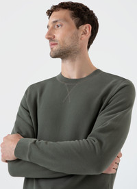 A modern take on the classic athletic sweatshirt. Introduced by former Sunspel creative director Jonathan Anderson, it has a neat fit and refined sweatshirt detailing, with a V-stitch insert and rib cuffs. Made from an exceptionally soft cotton loopback fabric, its internal loop stitch is specially designed to be warm and insulating. The contemporary cut makes it a highly versatile piece that can be worn as easily with a jacket as it can with matching sweatpants. Product Code: MSWE1516-GNGY Fabric & Care - Main: 100% Cotton - Ribs: 95% Cotton, 5% Elastane - Gentle wash at 30°C - Do not tumble dry - Do not dry clean - Made in Portugal Size & Fit - Click here to view size chart - Fits true to size - take your normal size - Regular Fit - Model is 6'1" and wears a size Medium