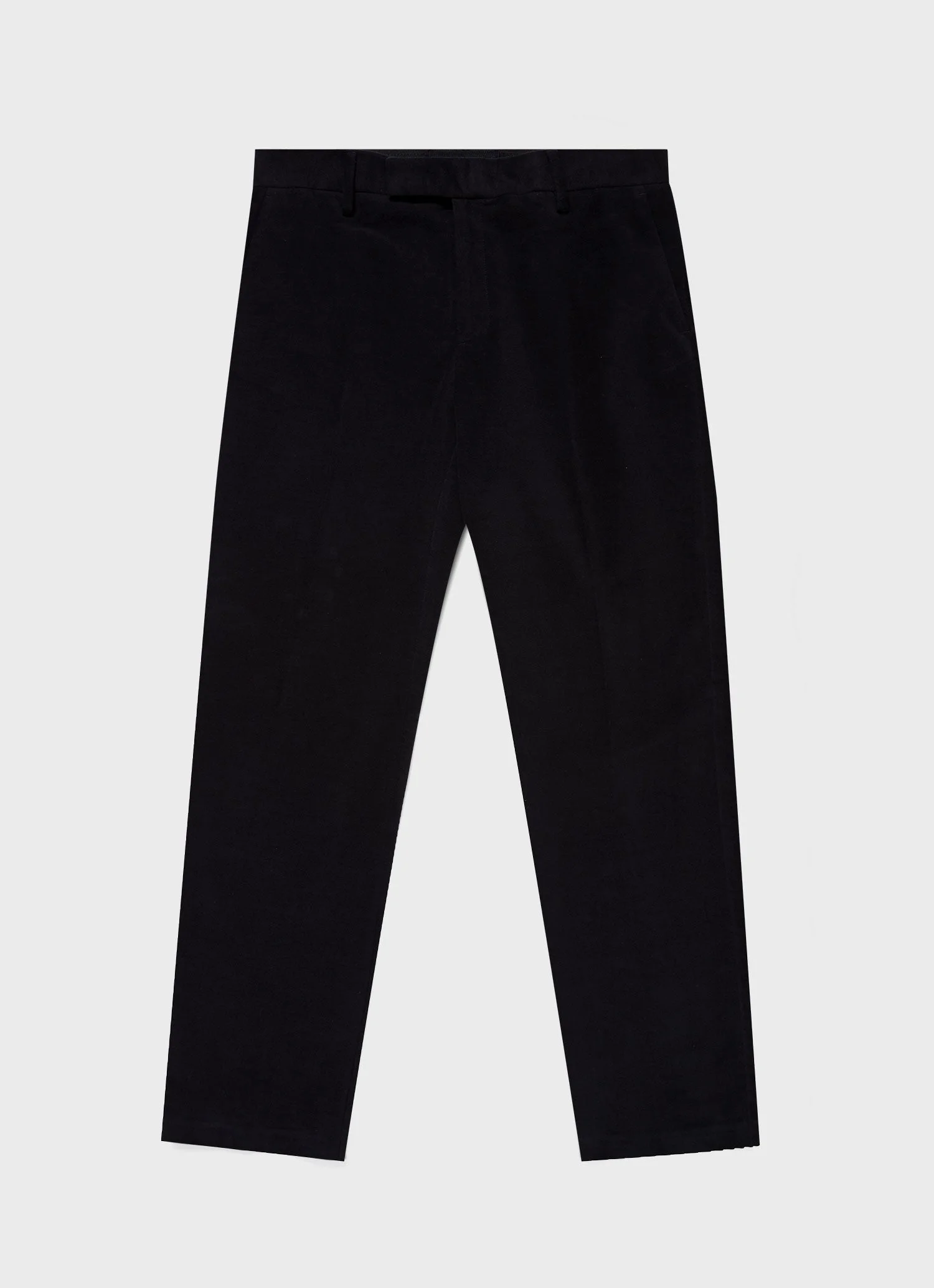 Crafted in a super-soft moleskin from a renowned Italian mill, this trouser has a slight stretch for added comfort. Tailored in a regular fit with a straight leg, it features an internal tailored waistband, horn buttons, and a press crease for a refined look. With two back pockets, it combines classic tailoring with modern comfort for versatile styling. Pair with the matching moleskin jacket for a complete set. Product Code: MTRS3111-BUAA Fabric & Care - 98% Cotton, 2% Elastane - Horn buttons - Do not wash - Do not tumble dry - Dry clean only - Made in Portugal Size & Fit - Regular fit - Flat front - Straight leg - Tailored waist - Model is 6'3" and wears a size 32