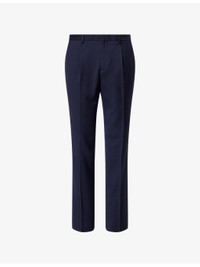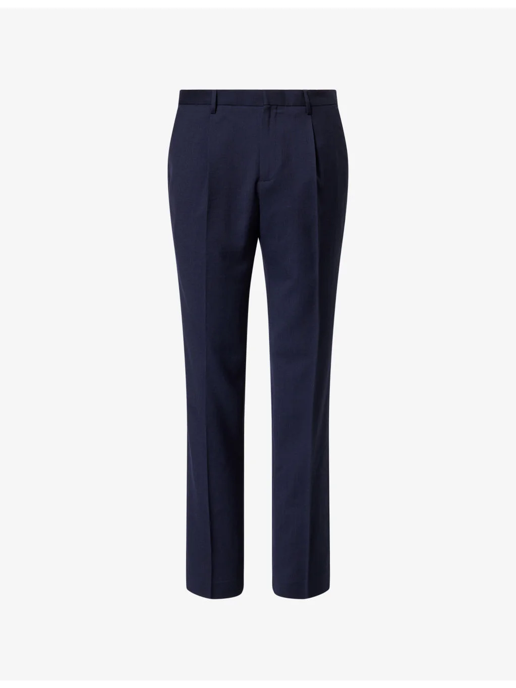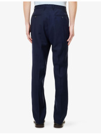 PRODUCT DETAILS - Sunspel wool trousers - 100% wool - Hook-and-eye fastening and zip fastening at front - Straight leg, pleated waist, two slip pockets at front, two welt pockets at back - Dry clean - Made in Portugal - Size 32/32: rise 11.8in / 30cm, inside leg 31.4in / 80cm, leg opening 15.7in / 40cm - Model is 6ft 2in/1.88m and wears a size UK 32 - Lightweight, non-stretch Ref: R04551868