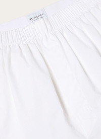 Sunspel introduced the boxer short to Britain in 1947. We also perfected its design. Today, with just a few minor tweaks, we still produce boxer shorts to our original specifications. The seams are double-turned and feldlocked to avoid rough edges. The rear has a distinctive back panel instead of an uncomfortable central seam. And each pair is cut from 100% long-staple fine cotton for unmatched lightness, softness and breathability. Product Code: MBOX4700-WHAA Fabric & Care - 100% Cotton - Gentle wash at 40°C - Do not tumble dry - Dry cleanable - Made in Portugal Size & Fit - Classic design, barely changed since 1947 - Open fly - Back panel and enclosed seams for added comfort - Elasticated waist - Model is 6'2" and wears a size M