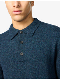 PRODUCT DETAILS - Sunspel lambswool polo jumper - 100% lambs wool - Exposed button fastenings at front - Regular fit, polo collar, long sleeves, ribbed trims, knitted - Hand wash - Made in Scotland - Model is 6ft 2in/1.88m and wears a size medium - Lightweight, slight stretch Ref: R04551858