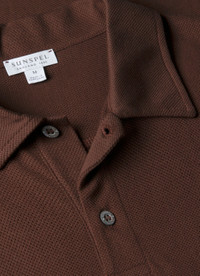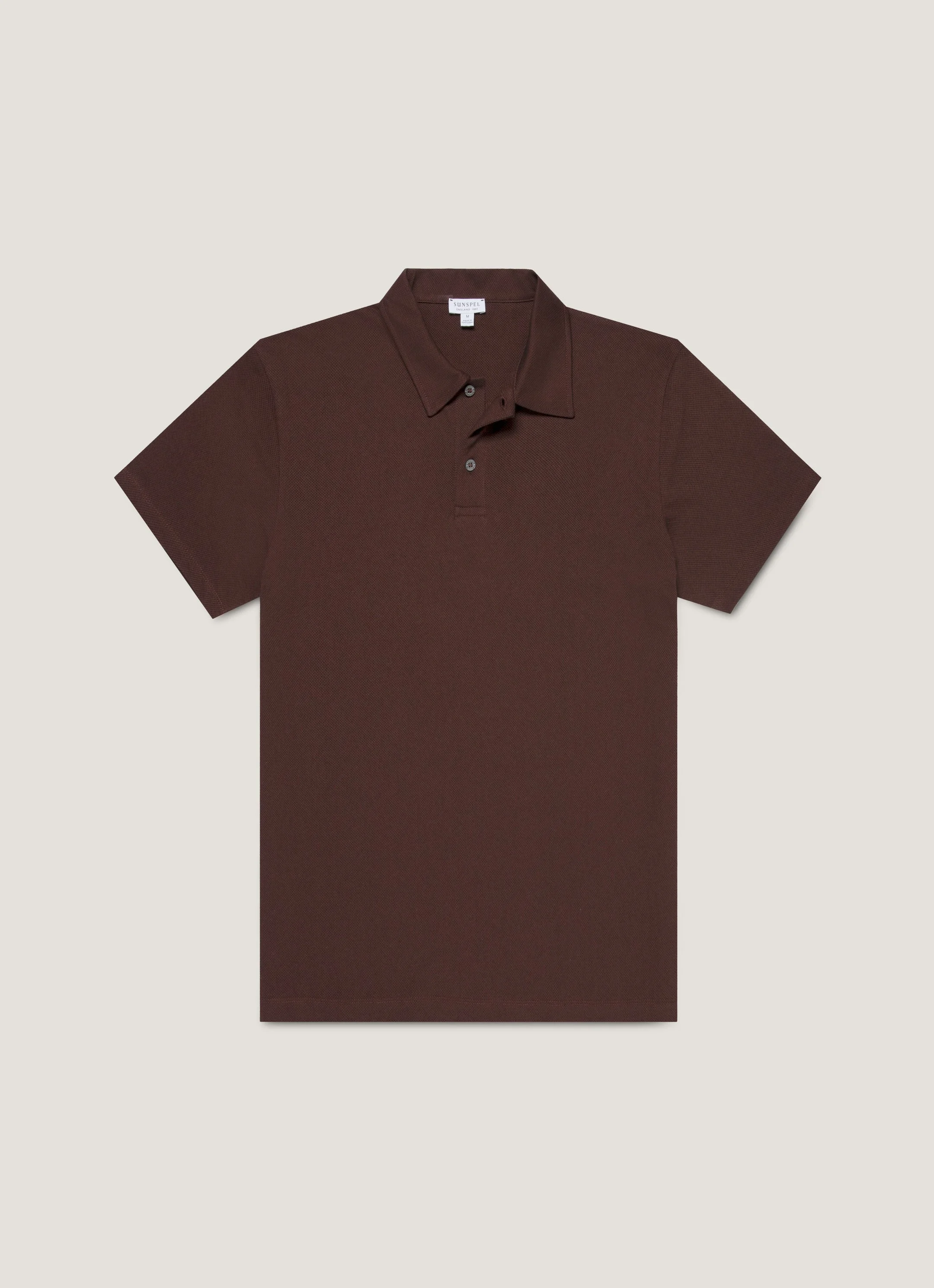 A regular fit version of our iconic Riviera Polo Shirt, crafted from the finest, extra-long staple Supima cotton, traceable to its Californian farm of origin. Lightweight, breathable and exceptionally comfortable, the style was first developed by Sunspel in the 1950s for the French Riviera and was worn for Daniel Craig’s debut performance as James Bond in Casino Royale. This updated version offers a more relaxed silhouette than the original, a streamlined design without a chest pocket, and branded shell buttons. Product Code: MPOL1076-RDEL Fabric & Care - 100% Supima Cotton - Cotton is fully traceable and sustainably sourced from California - Cotton is extra-long staple for durability and comfort - Gentle wash at 30°C with similar colours - Do not tumble dry - Dry cleanable - Made in Portugal Size & Fit - Regular fit - Model is 6'2", chest 38" and wears a size M