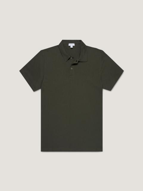 A regular fit version of our iconic Riviera Polo Shirt, crafted from the finest, extra-long staple Supima cotton, traceable to its Californian farm of origin. Lightweight, breathable and exceptionally comfortable, the style was first developed by Sunspel in the 1950s for the French Riviera and was worn for Daniel Craig’s debut performance as James Bond in Casino Royale. This updated version offers a more relaxed silhouette than the original, a streamlined design without a chest pocket, and branded shell buttons. Product Code: MPOL1076-GNIN Fabric & Care - 100% Supima Cotton - Cotton is fully traceable and sustainably sourced from California - Cotton is extra-long staple for durability and comfort - Gentle wash at 30°C with similar colours - Do not tumble dry - Dry cleanable - Made in Portugal Size & Fit - Regular fit - Model is 6'3", chest 39" and wears a size M
