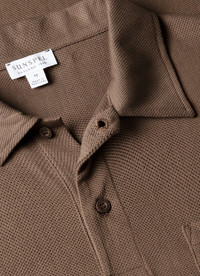 The Riviera Polo Shirt is the essence of Bond style. The style and unique mesh fabric were first developed by Sunspel in the 1950s for the French Riviera and later tailored for Daniel Craig’s debut performance as James Bond in Casino Royale. Crafted from the finest, extra-long staple Supima cotton, traceable to its Californian farm of origin, it is lightweight, breathable and exceptionally comfortable. Cut for a slim fit, it is a modern classic. Product Code: MPOL1026-BRGC Fabric & Care - 100% Supima Cotton - Cotton is fully traceable and sustainably sourced from California - Cotton is extra-long staple for durability and comfort - Gentle wash at 30°C with similar colours - Do not tumble dry - Dry cleanable - Made in Portugal Size & Fit - Slim fit - Model is 6'3", chest 36" and wears a size M