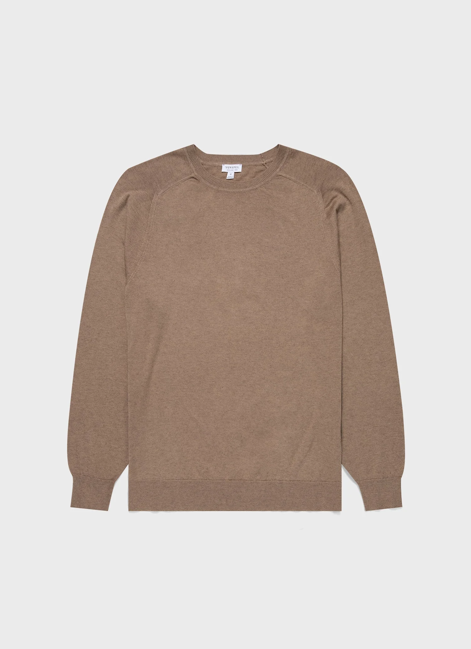 Combining the world's finest wool, cashmere, with the world's finest cotton, Sea Island cotton, this is the ultimate knitted jumper. The cashmere-cotton mix makes it lightweight, soft and exceptionally smooth against the skin. Has soft rib trims and saddle raglan sleeves. It is a perfect transeasonal layer under a blazer or as a standalone piece. Product Code: MJUM8203-WHAK Fabric & Care - 85% Sea Island Cotton, 15% Cashmere - Do not wash - Do not tumble dry - Dry clean only - Made in Portugal Size & Fit - Regular fit - Model is 6'1", chest 38" and wears a size M