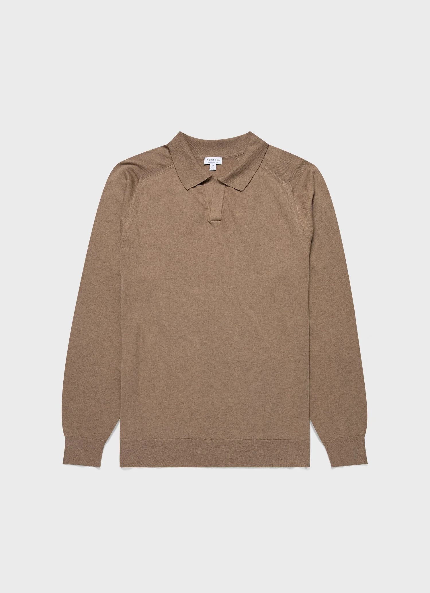 Combining the world's finest wool, cashmere, with the world's finest cotton, Sea Island cotton, this is the ultimate knitted polo. The cashmere-cotton mix makes it lightweight, soft and exceptionally smooth against the skin. Has soft rib trims, saddle raglan sleeves and an open placket collar. It is a perfect transeasonal layer under a blazer or as a standalone piece. Product Code: MPOL8204-WHAK Fabric & Care - 85% Sea Island Cotton, 15% Cashmere - Do not wash - Do not tumble dry - Dry clean only - Made in Portugal Size & Fit - Regular fit - Model is 6'3", chest 39" and wears a size M