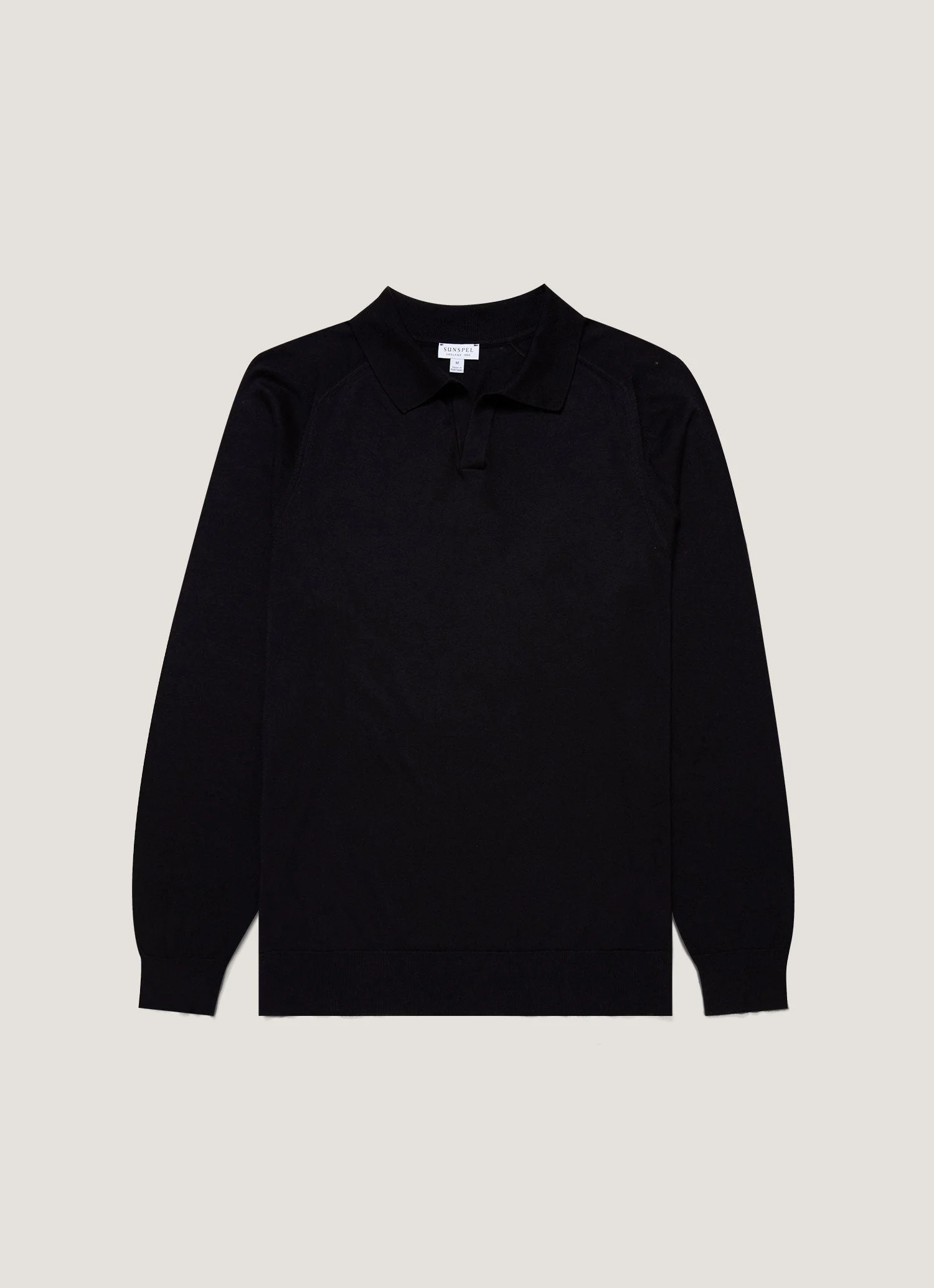 Combining the world's finest wool, cashmere, with the world's finest cotton, Sea Island cotton, this is the ultimate knitted polo. The cashmere-cotton mix makes it lightweight, soft and exceptionally smooth against the skin. Has soft rib trims, saddle raglan sleeves and an open placket collar. It is a perfect transeasonal layer under a blazer or as a standalone piece. Product Code: MPOL8204-BKAA Fabric & Care - 85% Sea Island Cotton, 15% Cashmere - Do not wash - Do not tumble dry - Dry clean only - Made in Portugal Size & Fit - Regular fit - Model is 6'1", chest 38" and wears a size M