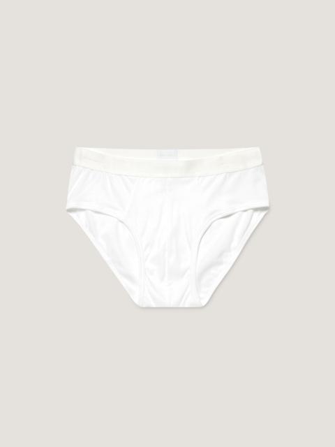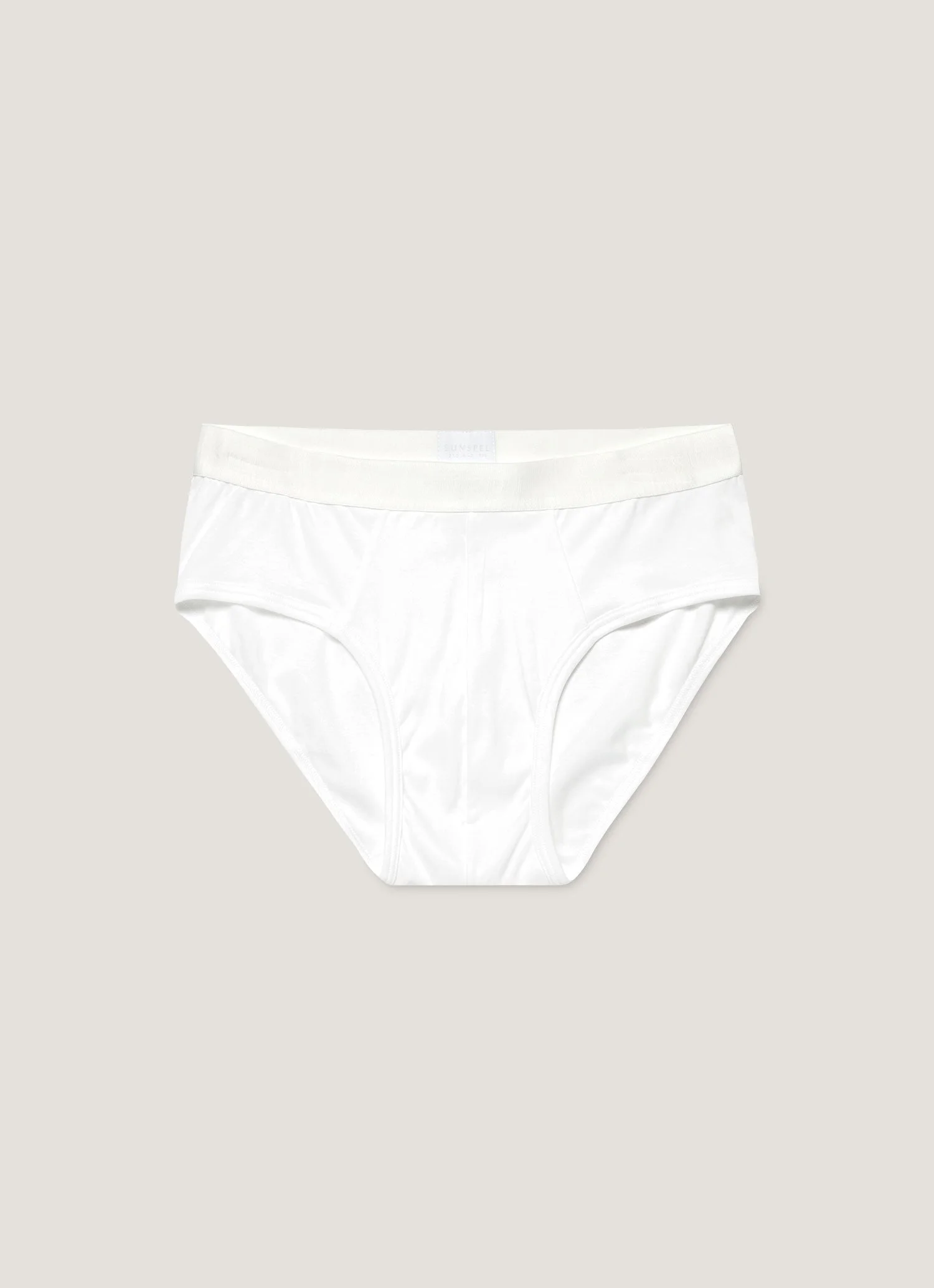 Handcrafted from our luxurious Sea Island cotton, these are the softest briefs you will ever wear. Cut to the same fit as our classic brief, we`ve stripped back the seams to provide maximum comfort whilst still maintaining support. We've also used the highest quality elastic in the waistband and super-strong stitching to maintain quality over time. Grown in the Caribbean and handpicked by specialists, authentic Sea Island cotton makes up only 0.0004% of the world's cotton supplies. It has a fine uniform texture, silky lustre and great tensile strength. This unique set of qualities allows it to be spun to an extraordinarily high yarn count for softness and longevity. Product Code: MBRF4500-WHAA Fabric & Care - 100% Sea Island Cotton - Sourced from the West Indies and Spun in Switzerland - Gentle wash at 30°C - Do not tumble dry - Dry cleanable - Made in Portugal Size & Fit - Close fit - No front opening - Flat locked seams for added comfort - Elasticated waist - Model is 6'2" and wears a size M