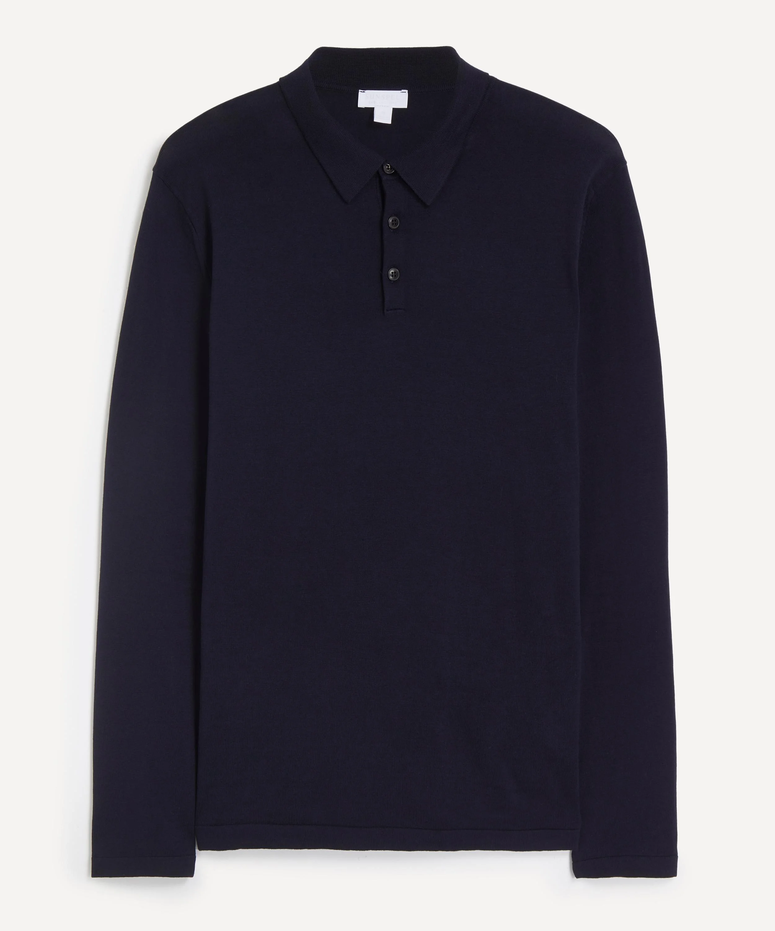 DETAILS Cotton polo Sea Island cotton Regular fit Long sleeves Ribbed collar Partial button placket SIZE & FIT Model is 186cm/6'1"; Chest: 92cm; Waist: 71cm and wears a size M COMPOSITION & CARE 100% Cotton Gentle wash at 30°C with similar colours