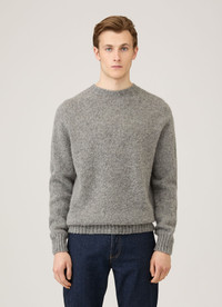 Knitted in Scotland from exceptionally soft lambswool, our take on the traditional Shetland jumper blends heritage craftsmanship with modern comfort. The rich melange of shades creates a distinctive texture and depth of colour, while gentle brushing adds extra softness. Designed with a regular fit, it features saddle raglan shoulders and chunky ribbed trims for a relaxed, cosy feel. Product Code: MJUM8266-GYAK Fabric & Care - Made In Scotland - 100% Wool - Cool hand wash - Do not tumble dry - Dry cleanable Size & Fit - Regular fit - Model is 6'3", chest 36" and wears a size M