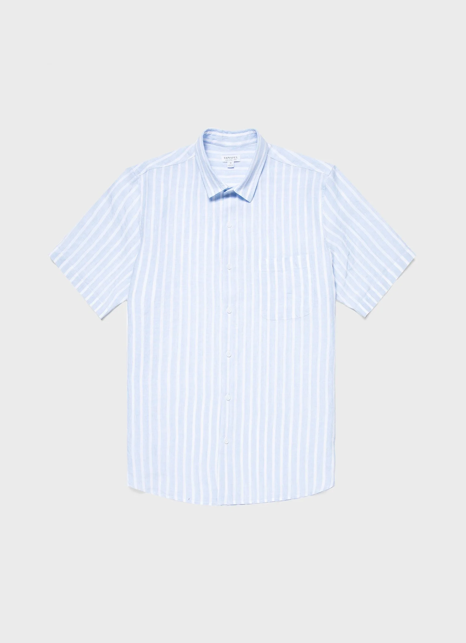 The cool breathable feel of linen makes this the ideal summer shirt. The Italian linen fabric uses an extra fine fibre for a softer handle than traditional linen, and it's been given an extra soft wash for a casual summer look. Single pocket, regular fit. Wear on its own or open over a T-shirt. Product code: MSHT2039-STMP Fabric & Care - 100% Linen - Fabric by Canclini, Italy - Gentle wash at 40°C with similar colours - Do not tumble dry - Dry cleanable - Made in Portugal Size & Fit - Click here to view size chart - Fits true to size - take your normal size - Relaxed fit - Model is 6'1" and wears a size Medium