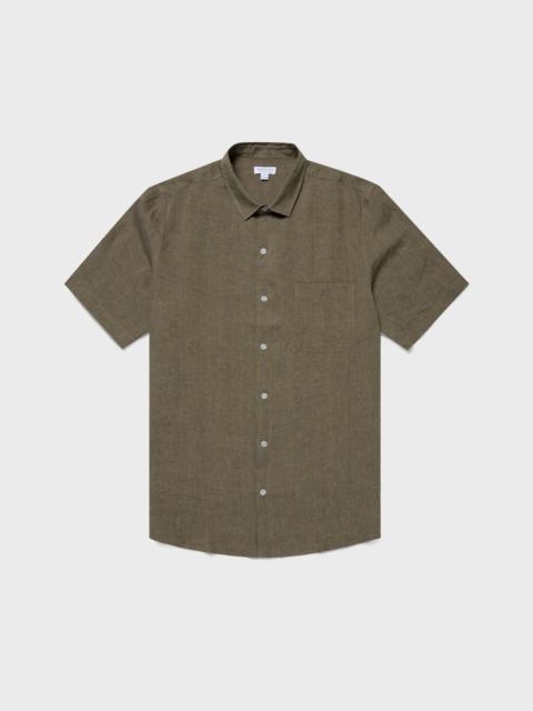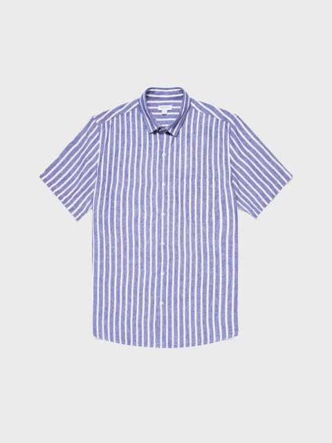 The cool breathable feel of linen makes this the ideal summer shirt. The Italian linen fabric uses an extra fine fibre for a softer handle than traditional linen, and it's been given an extra soft wash for a casual summer look. Single pocket, regular fit. Wear on its own or open over a T-shirt. Product Code: MSHT2039-BUAM Fabric & Care - 100% Linen - Fabric woven by Monti, Italy - Gentle wash at 40°C with similar colours - Do not tumble dry - Dry cleanable - Made in Portugal Size & Fit - Fits true to size - take your normal size - Relaxed Fit - Model is 6'1" and wears a size Medium