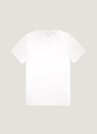 This luxurious T-shirt is handmade in our factory in Long Eaton, England from a super-soft Italian mulberry silk-cotton blend. Spun by an Italian mill, the matte fabric has a natural drape and lustre and combines the best properties of both fibres - the cotton adds durability and softness while the silk offers a unique smoothness and texture. Elevated and elegant, it pairs perfectly with a jacket. Product Code: MTSH0175-WHAA Fabric & Care - Made in England - 62% Silk, 38% Cotton - Gentle wash at 30°C with similar colours - Do not tumble dry - Do not dry clean Size & Fit - Regular fit - Model is 6'2", chest 39" and wears a size M