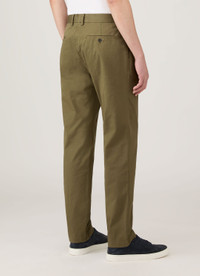 A slim-fit chino with a mid-to-low rise and a classic flat-front design. Crafted from lightweight Italian cotton with a touch of stretch for added comfort, and garment dyed for a soft, casual feel. Finished with a tailored waistband, button closure, zip fly, and single welt back pockets. Product Code: MTRS3102-GNGY Fabric & Care - 98% Cotton, 2% Elastane - Gentle wash at 40°C - Wash separately - Do not tumble dry - Dry cleanable - Made in Portugal Size & Fit - Slim fit - Flat front - Straight leg - Tailored waist - Model is 6'2" and wears a size 32