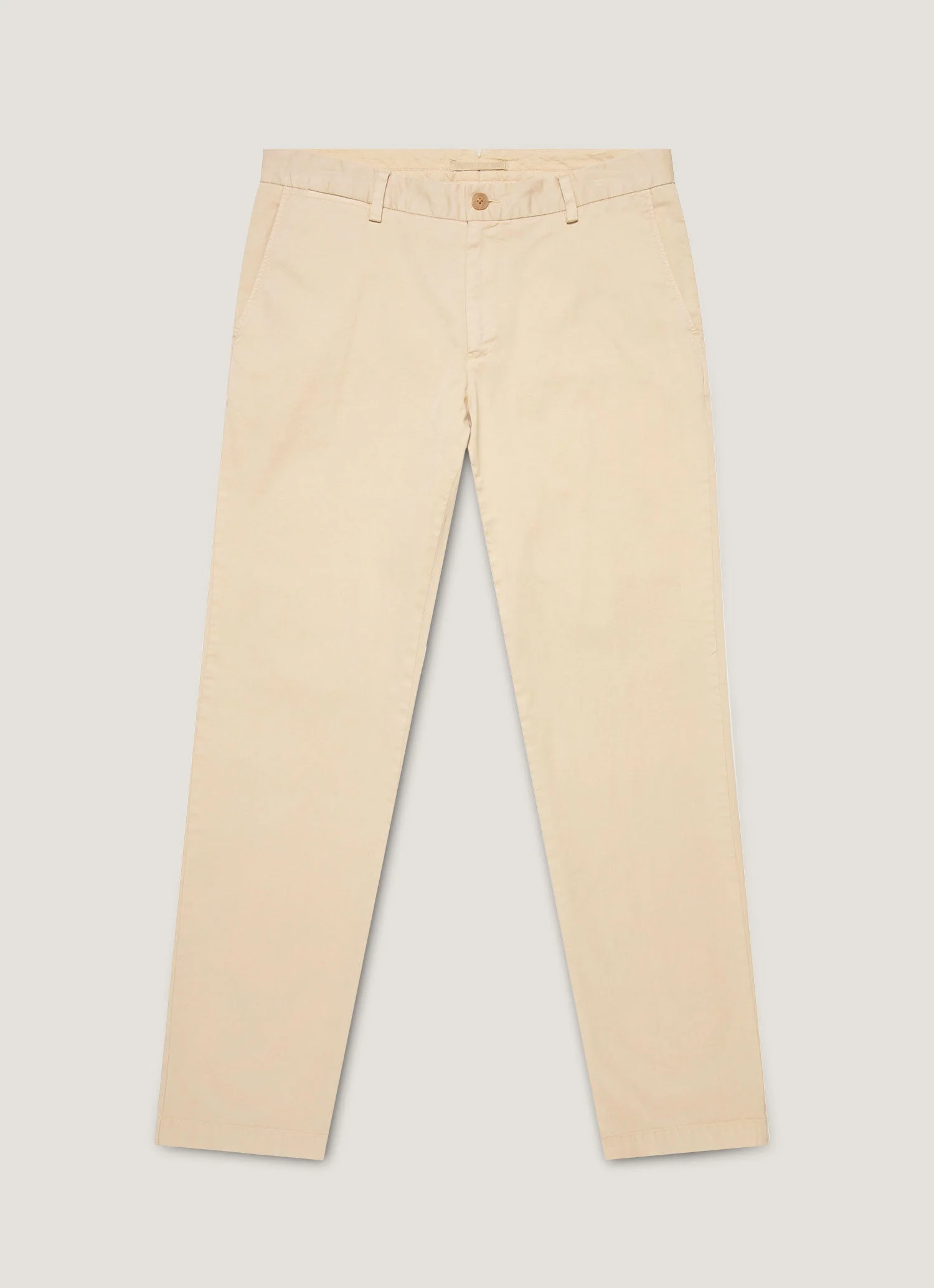 A slim fit chino cut with a mid to low rise, slim leg and classic flat-front design. Made from a lightweight Italian cotton that's been garment dyed for a casual feel with elastane for added comfort. Features a horn button closure, zip fly and single-welt back pockets. Product Code: MTRS3102-WHBS Fabric & Care - 98% Cotton, 2% Elastane - Gentle wash at 40°C - Wash separately - Do not tumble dry - Dry cleanable - Made in Portugal Size & Fit - Slim fit - Flat front - Straight leg - Tailored waist - Model is 6'2" and wears a size 32